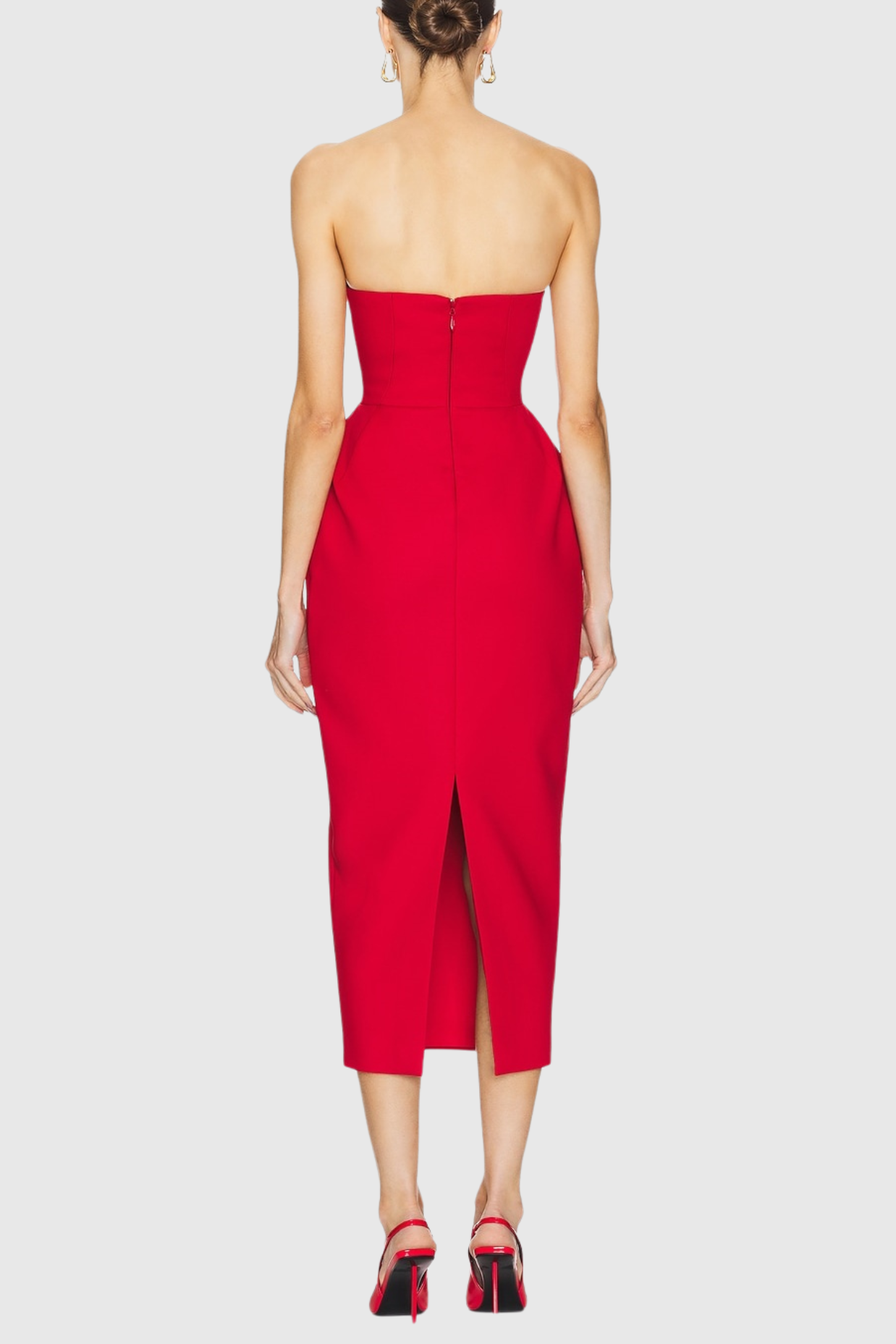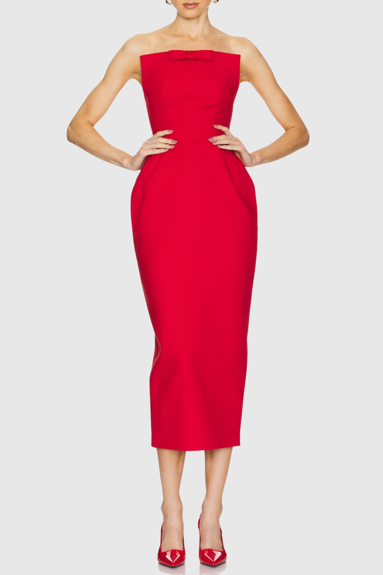 The amanda Bow Strapless Maxi Dress in Red is perfect for any formal occasion. With its elegant strapless design and striking red color, you'll be sure to make a statement. The added bow detail adds a touch of sophistication to this already stunning dress. Feel confident and stylish in this must-have piece.
