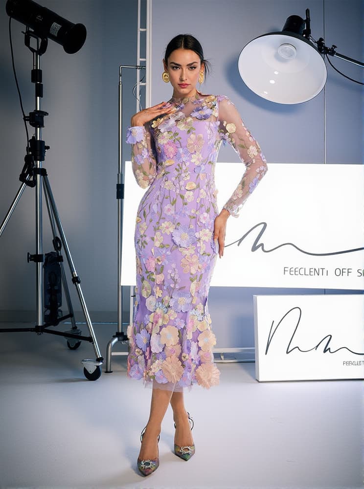 Experience elegance and style with the Amara Long Sleeve Embroidered Midi Dress in Purple. This stunning dress features delicate embroidery, a flattering midi length, and long sleeves for added sophistication. Perfect for any occasion, this dress is a must-have for any fashion-forward wardrobe.