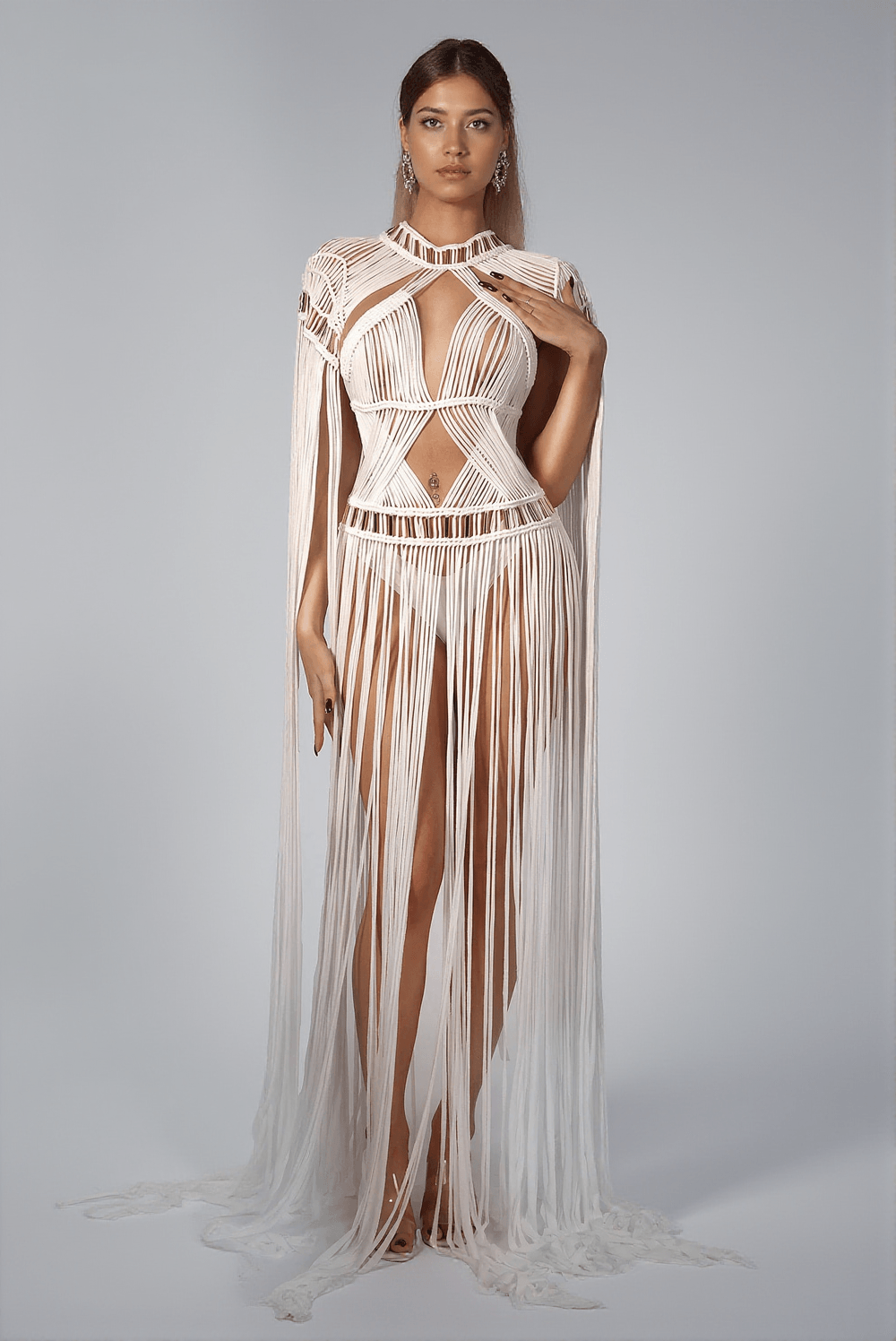 The standout feature of the Amarii Fringe Maxi Knit Dress is its intricate fringe detailing, which adds a dynamic texture and movement to every step. Perfect for summer festivals and beach parties where you want to make a statement.