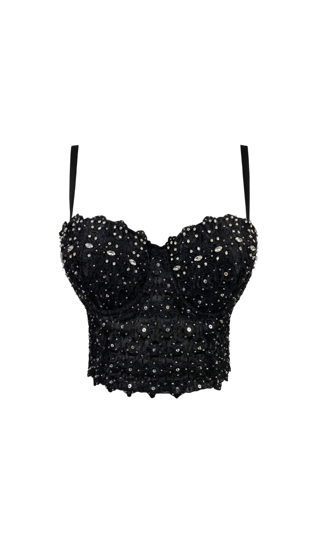 AMBERLIN RHINESTONE EMBROIDERED TOP