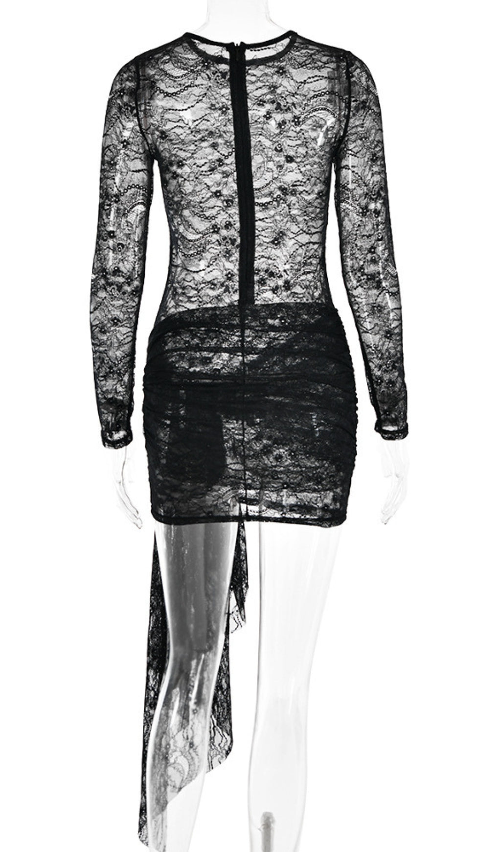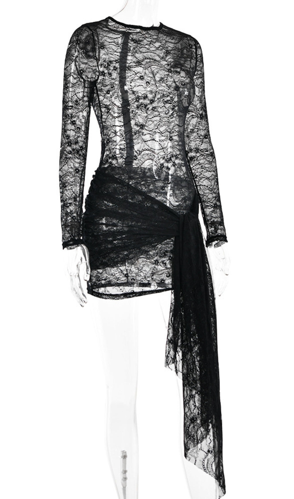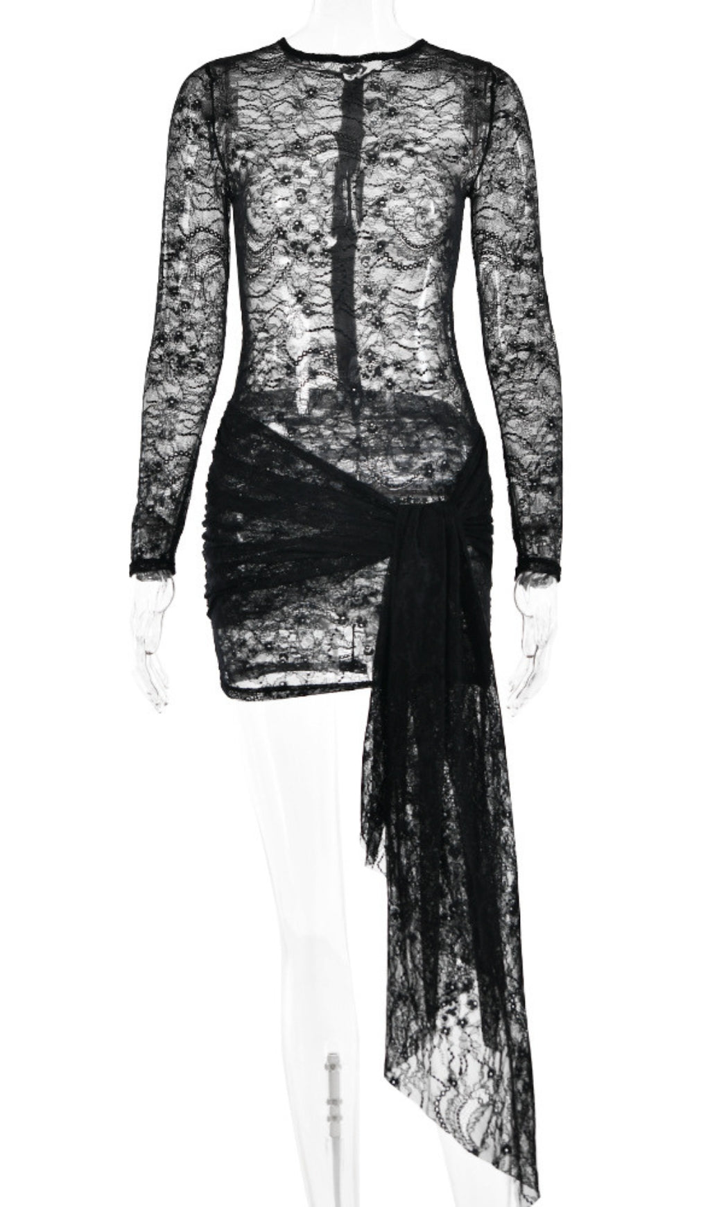 AMBROISE BLACK TWISTED LACE MINI DRESS