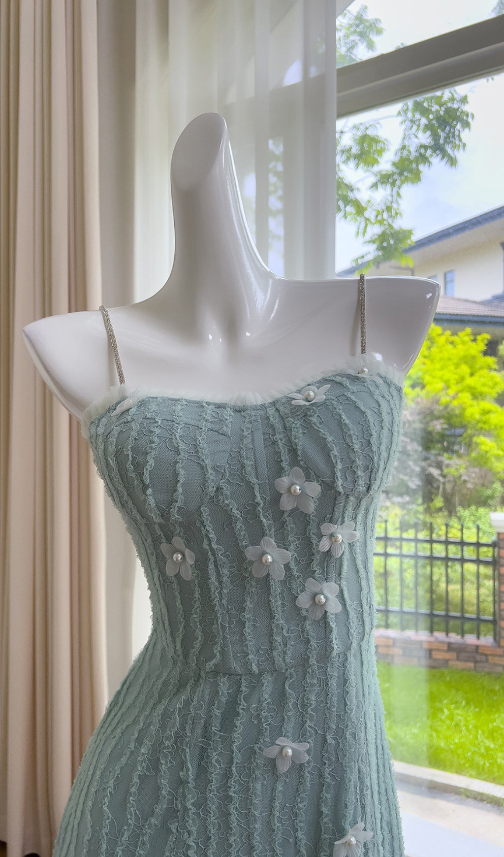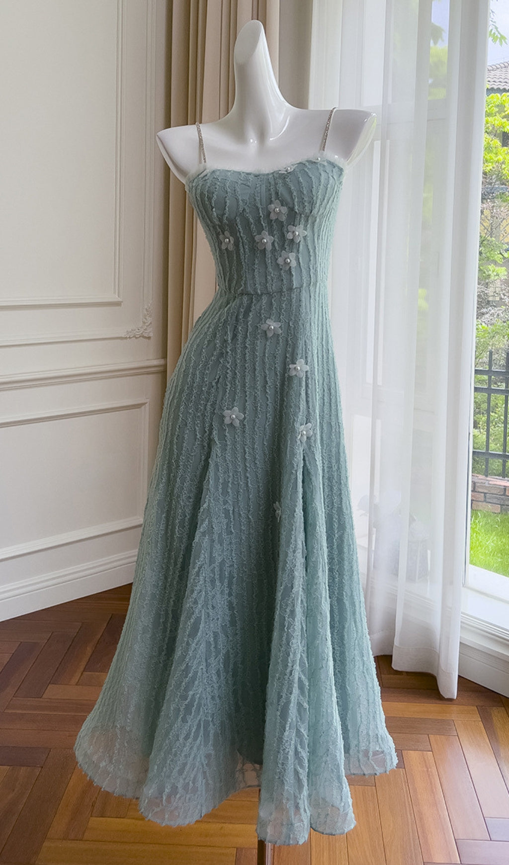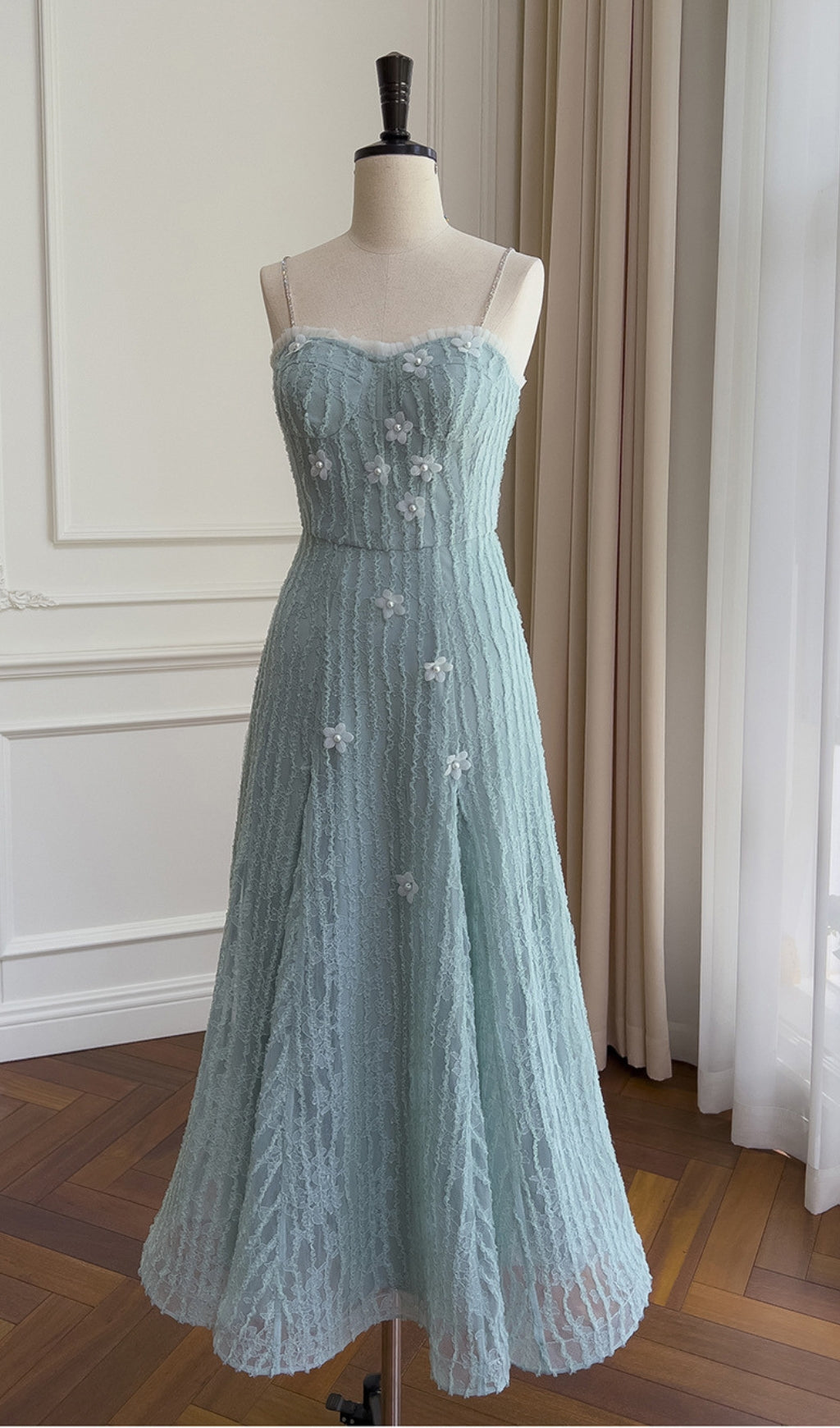 This flower embellished maxi dress will have you feeling like the ultimate fashionista! The Amédée lace adds a touch of elegance, while the playful floral design brings a fun twist. Perfect for any occasion, this dress will make a statement and have you turning heads.