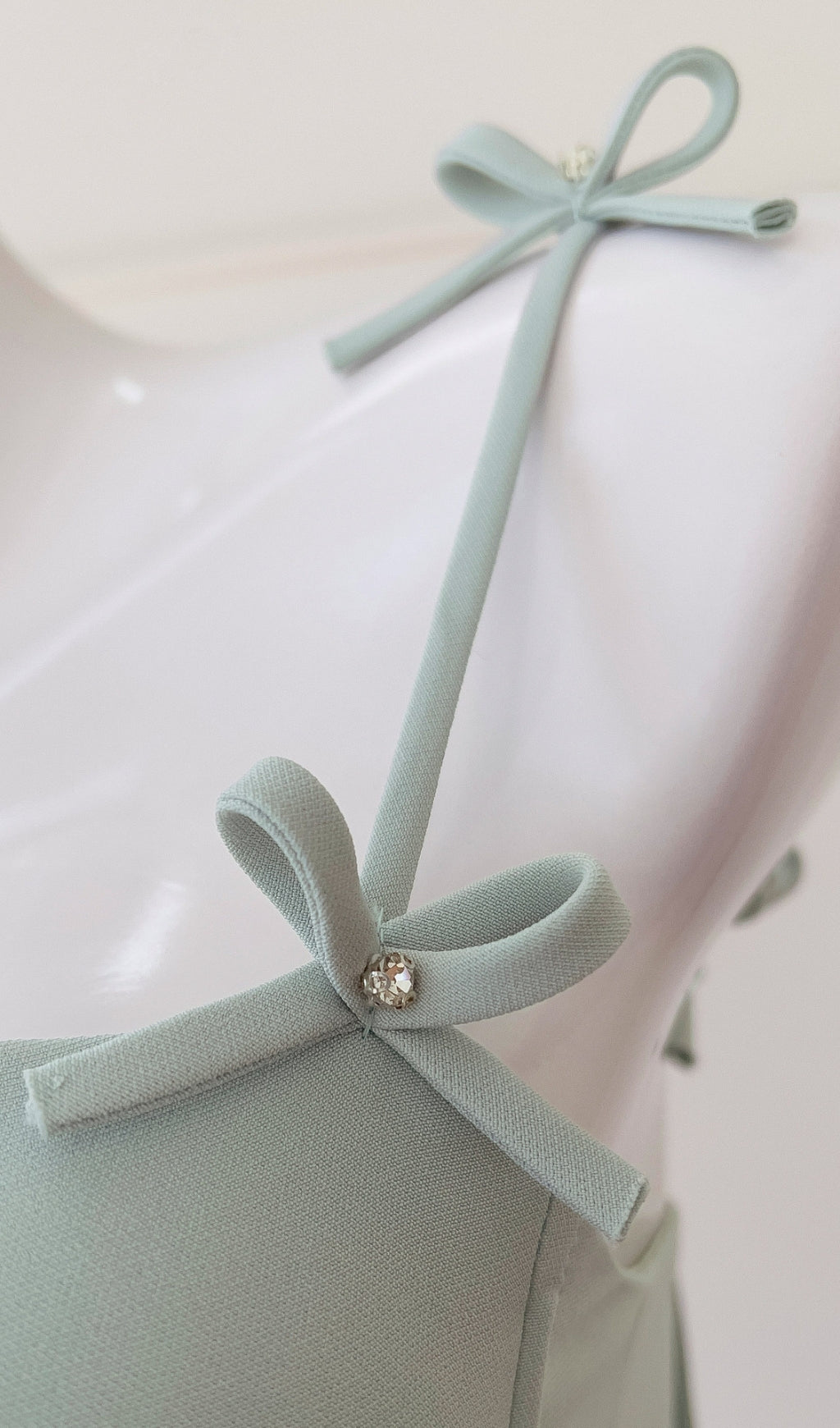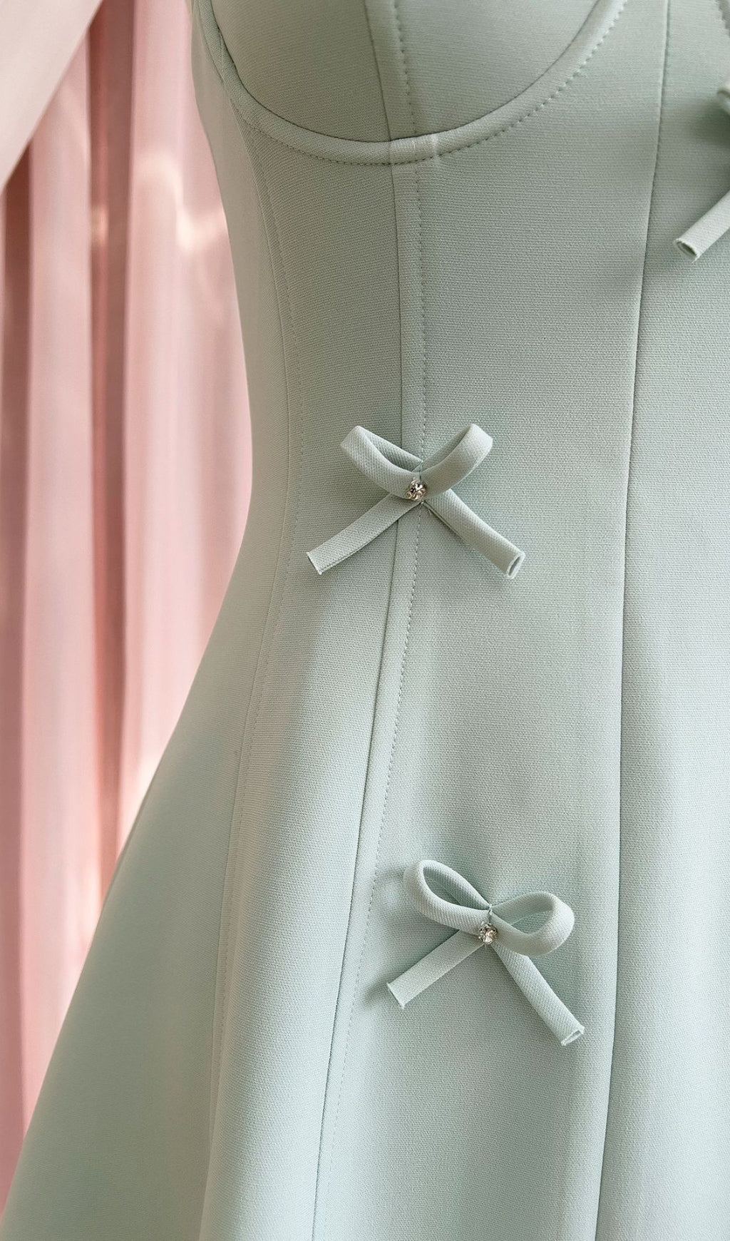 Get ready to turn heads in the AMIELA BOW EMBELLISHED MINI DRESS! This dress is not your average mini dress - it features a stunning bow embellishment that adds a touch of whimsy to the classic silhouette. With this dress, you'll be sure to make a statement and stand out in any crowd.