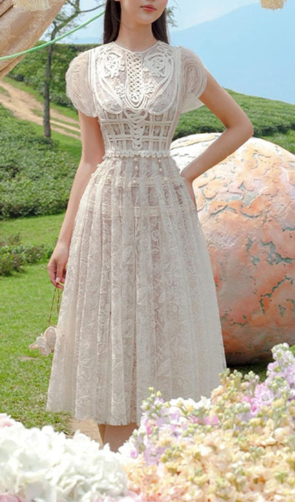 AMINATA LACE MIDI DRESS