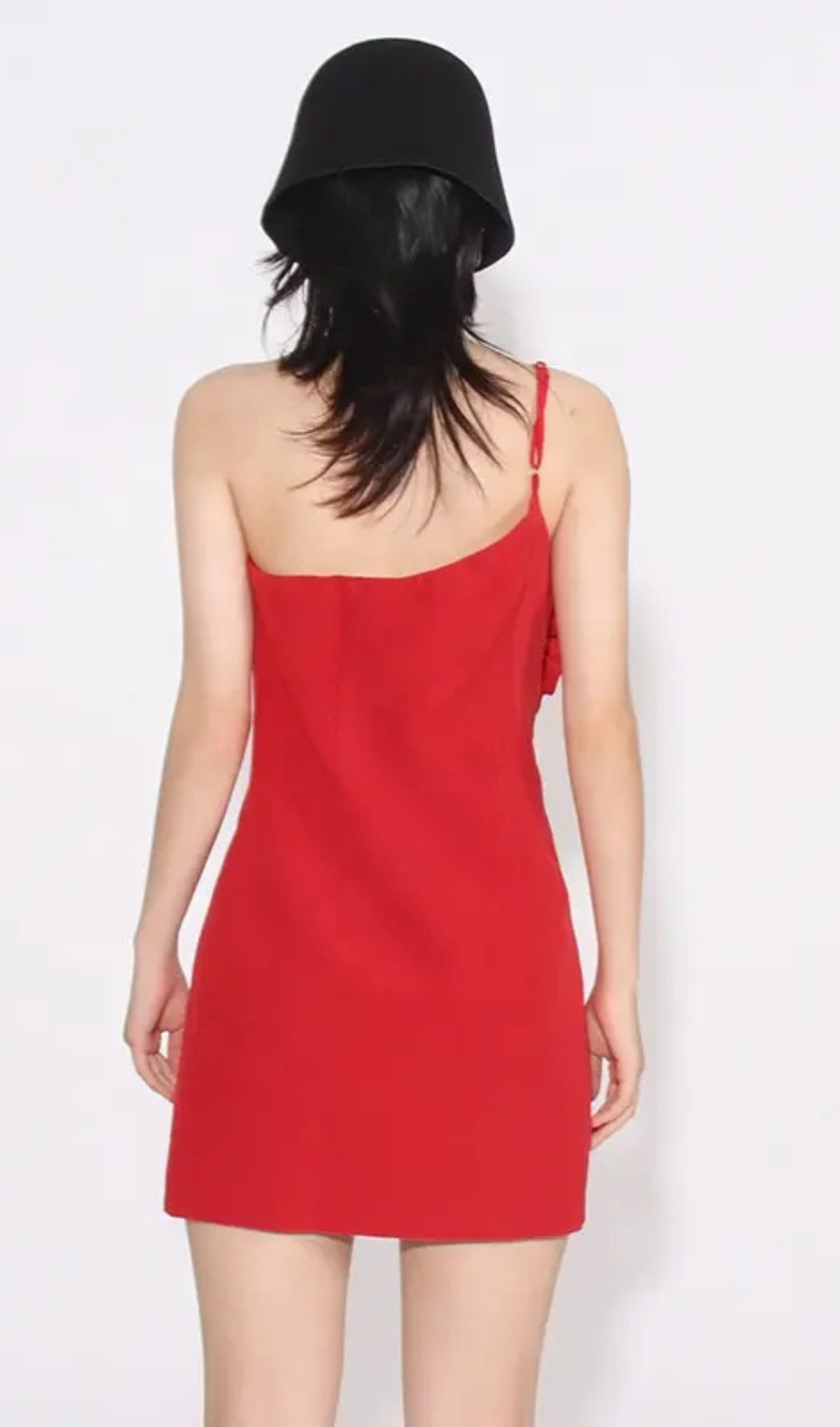 AMITY ONE-SHOULDER FLORAL-APPLIQUÉ MINI DRESS IN RED