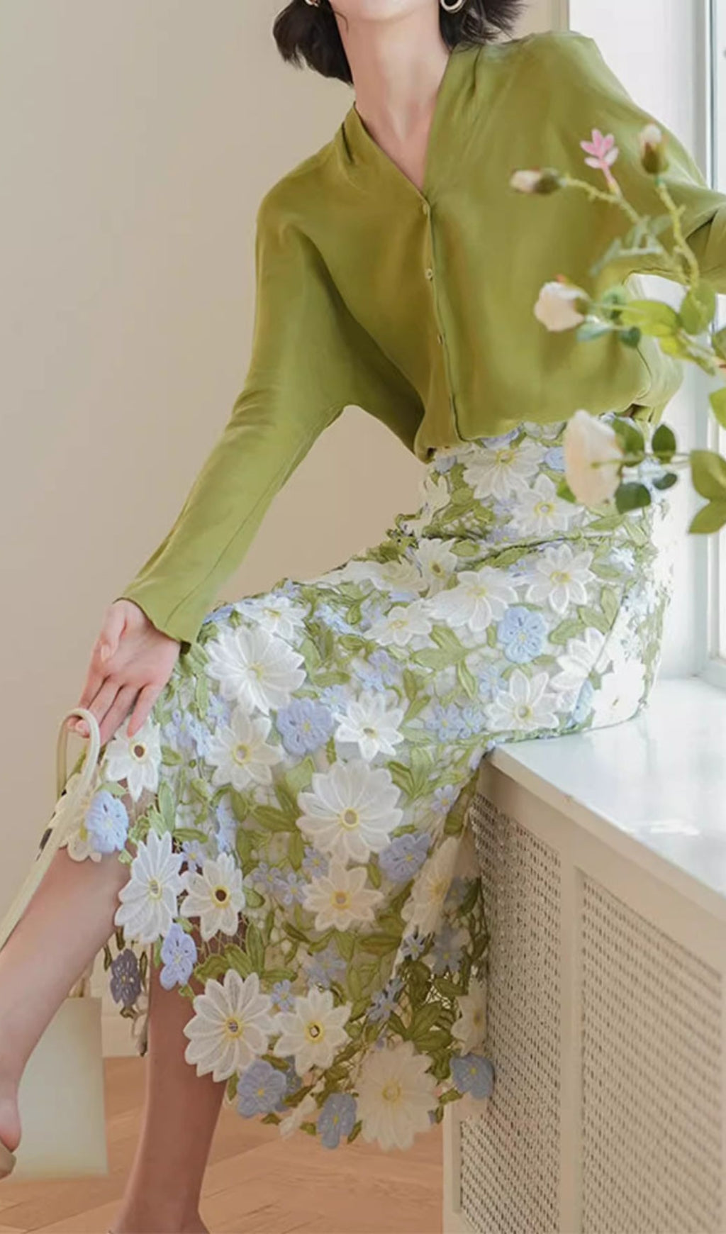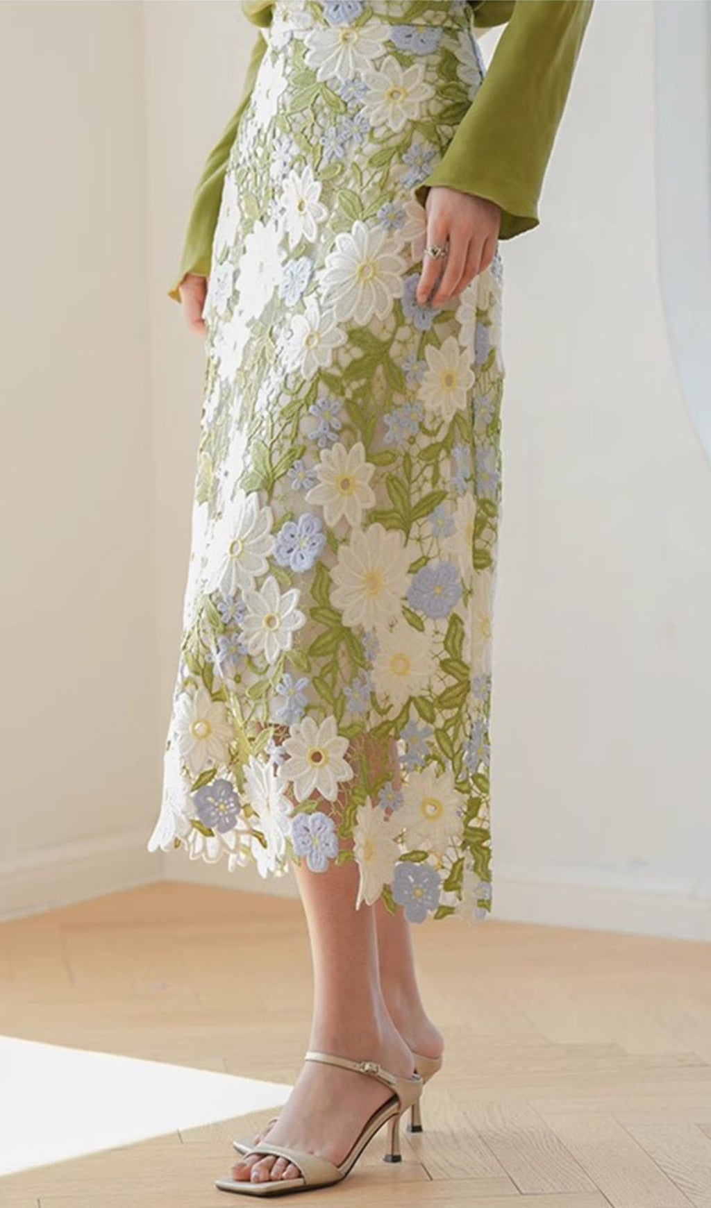Get in touch with your feminine side with the AMMA GREEN FLORAL SKIRT! Blooming with style, this skirt features a subtle floral pattern that will make you stand out. Pair it with a simple top for an effortlessly chic look. Show off your fashion sense without taking yourself too seriously.