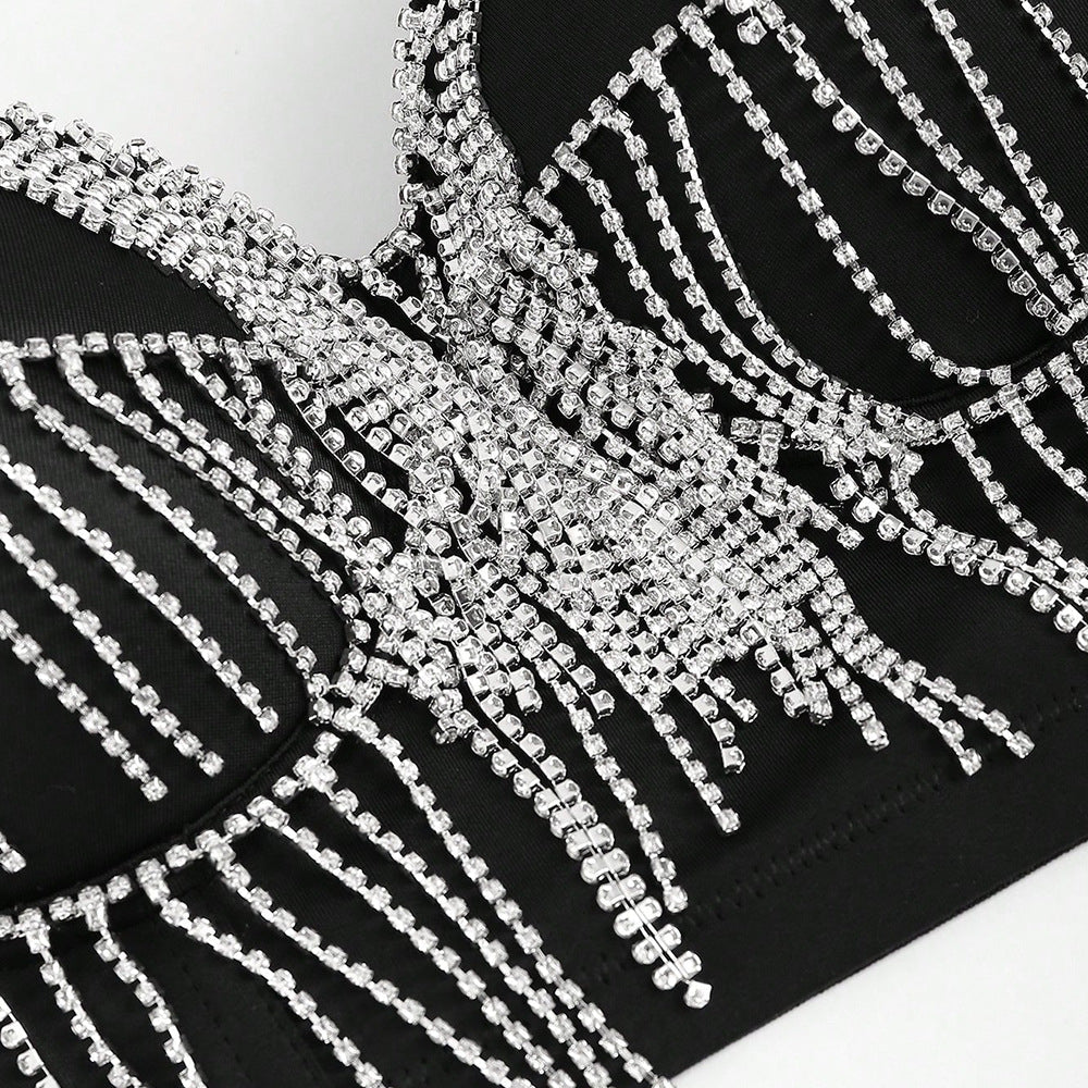 AMONDI CRYSTAL TASSEL CROP TOP