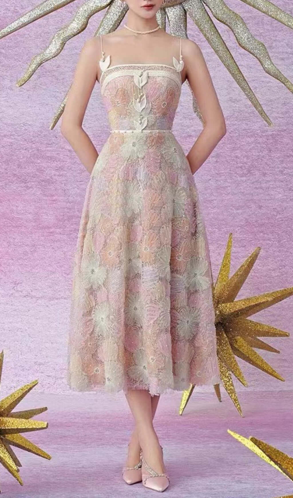 ANANA FLOWER BEAD MIDI DRESS