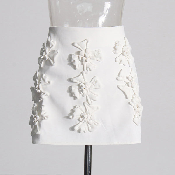 ANAXANDRA WHITE FLOWER MINI SKIRT