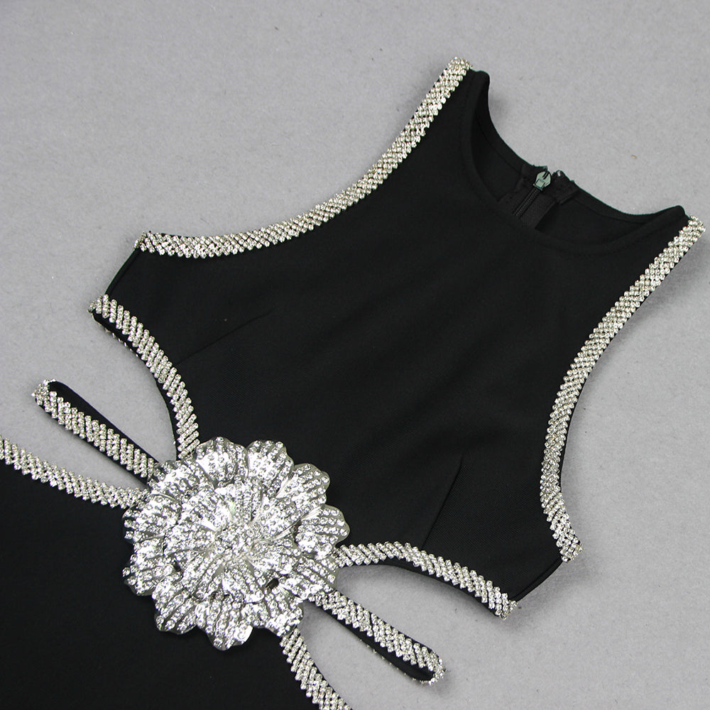 ANEIRIN CRYSTAL TRIM FLOWER DRESS