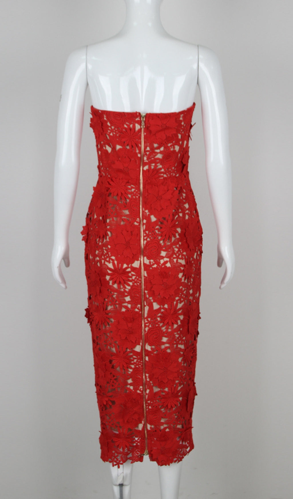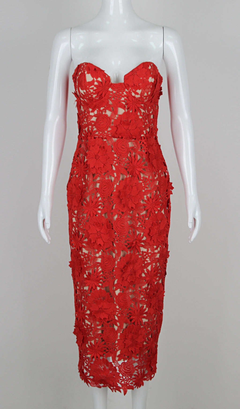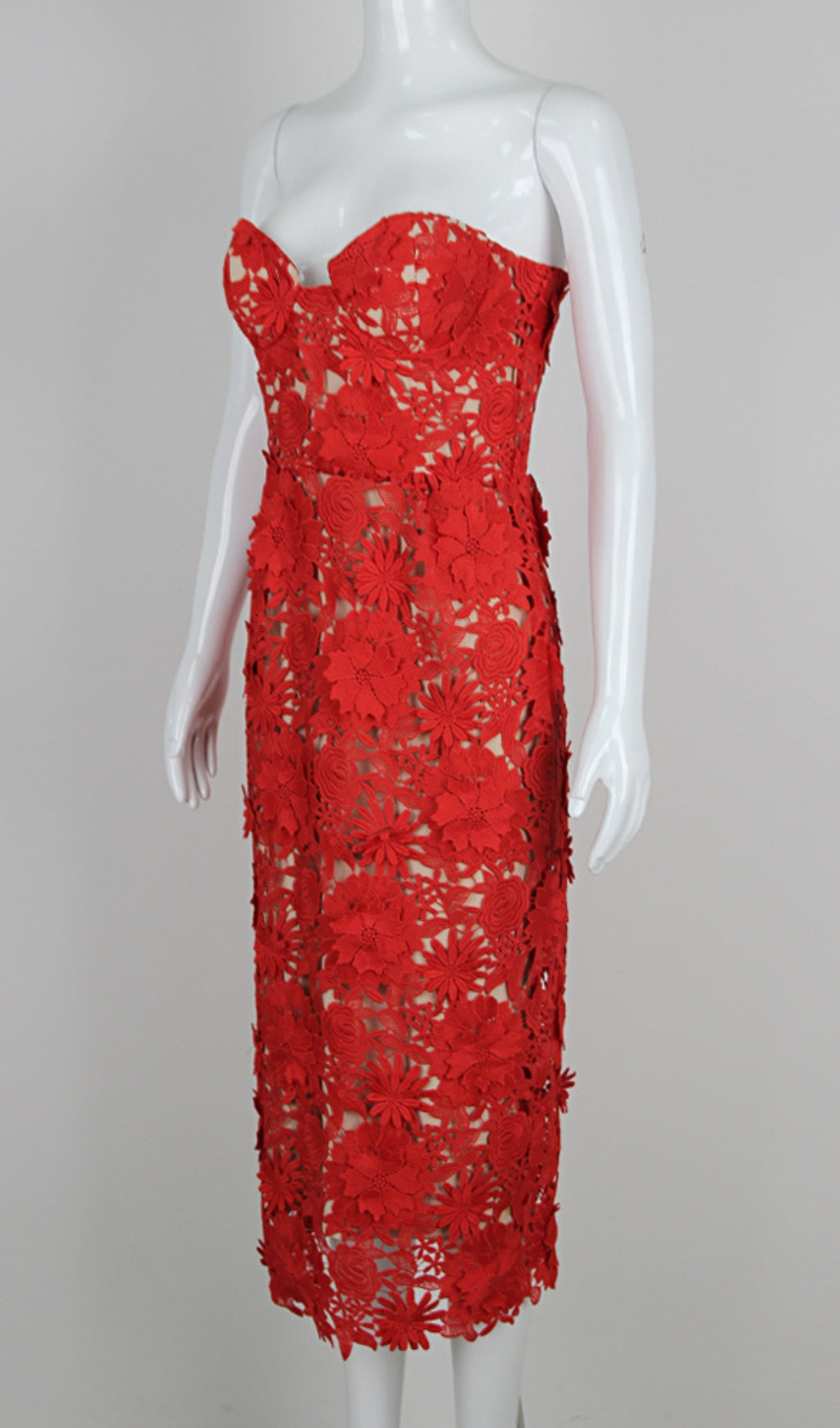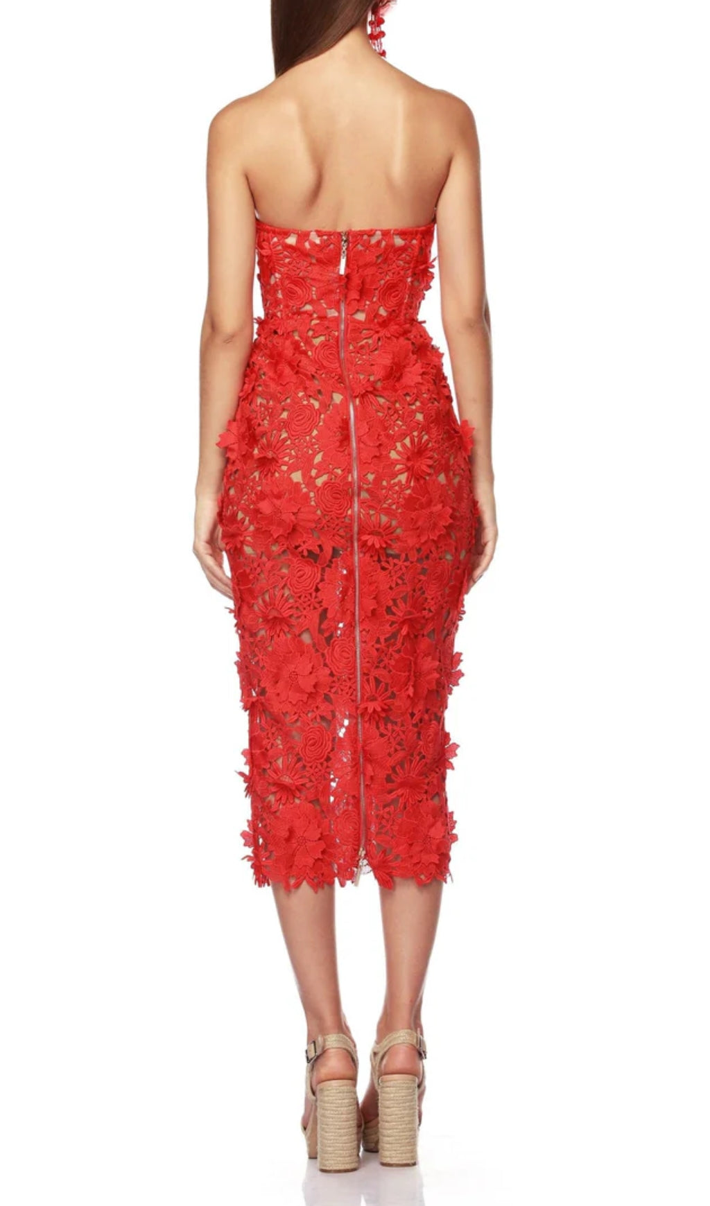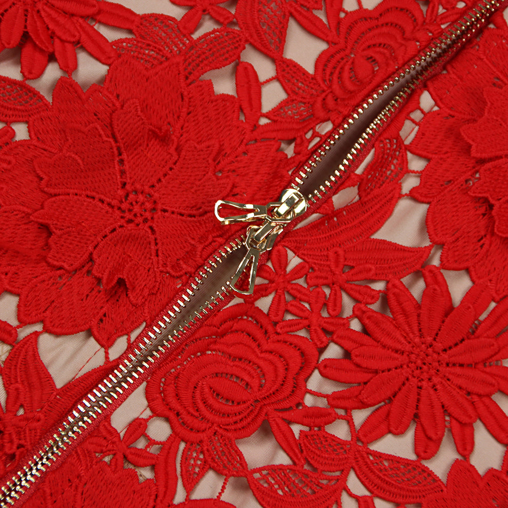ANEMOON RED FLOWER EMBROIDERY MIDI DRESS