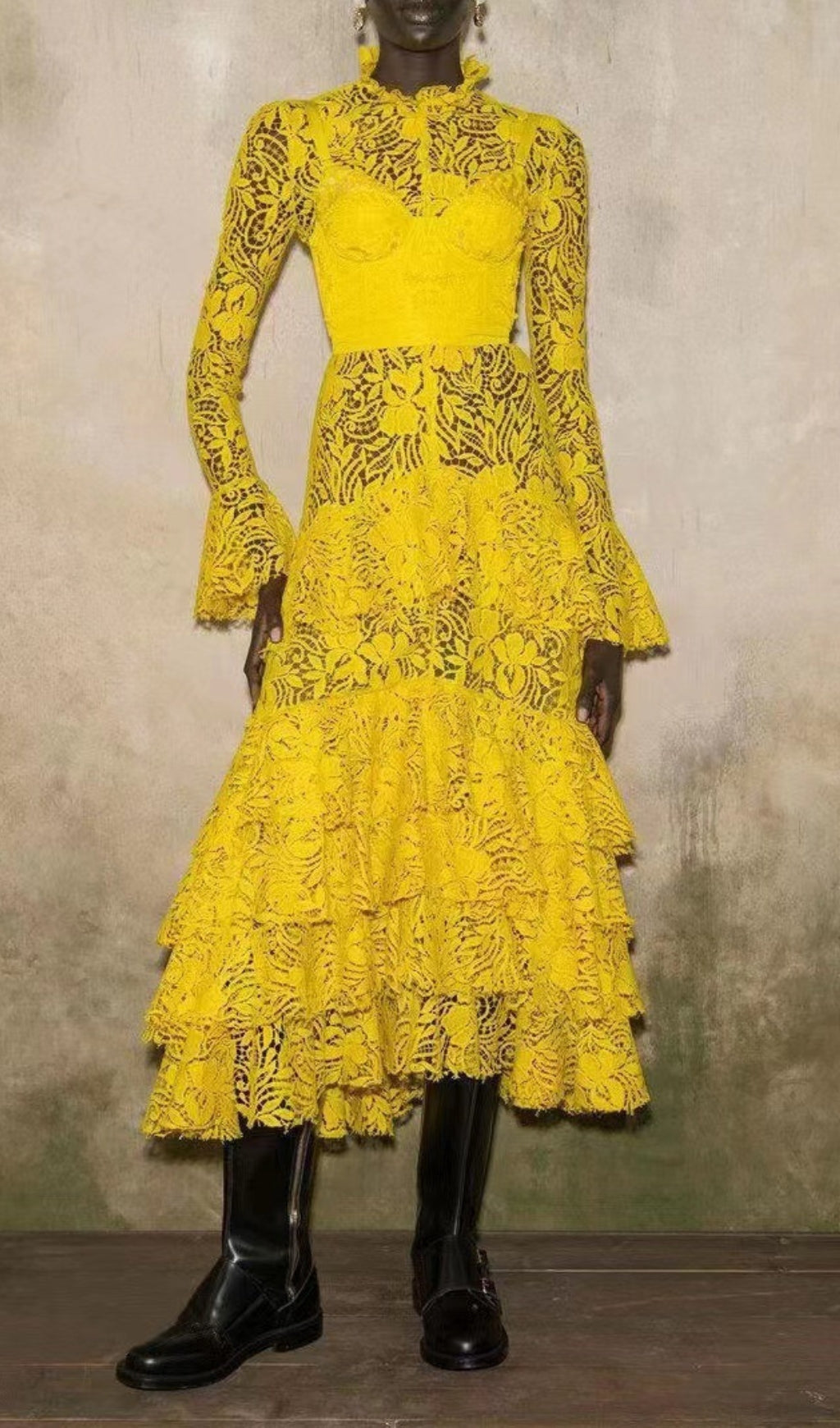 ANFISA YELLOW LACE MAXI DRESS