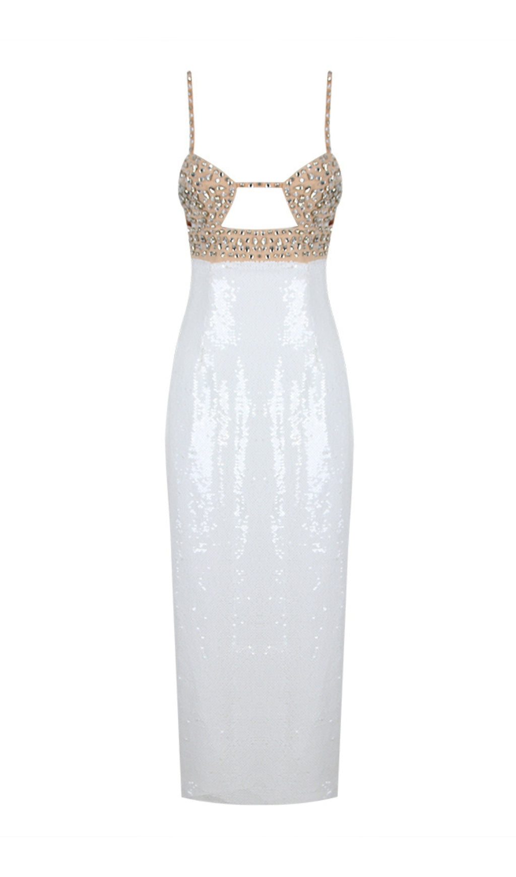 ANGELEA SEQUIN RHINESTONE MIDI DRESS