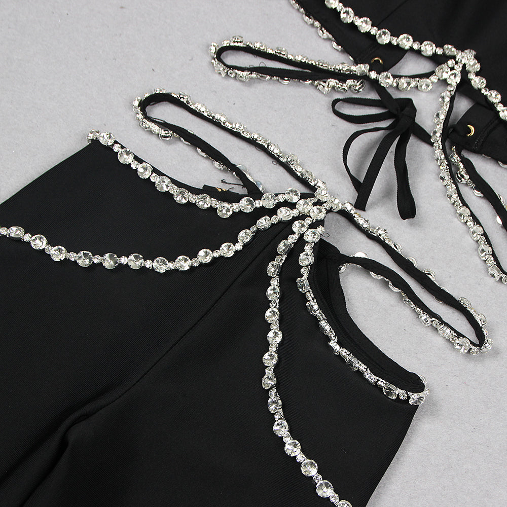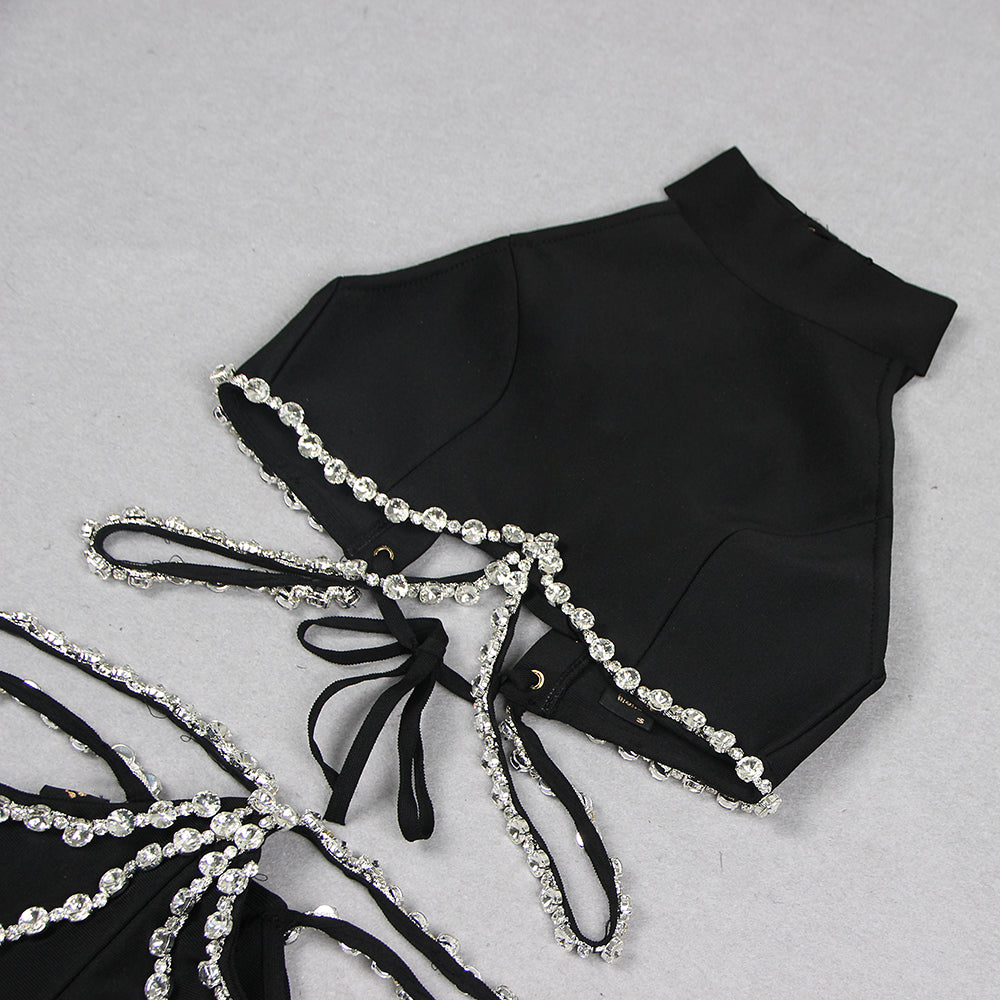ANGELI BLACK HALTER RHINESTONE BANDAGE SET
