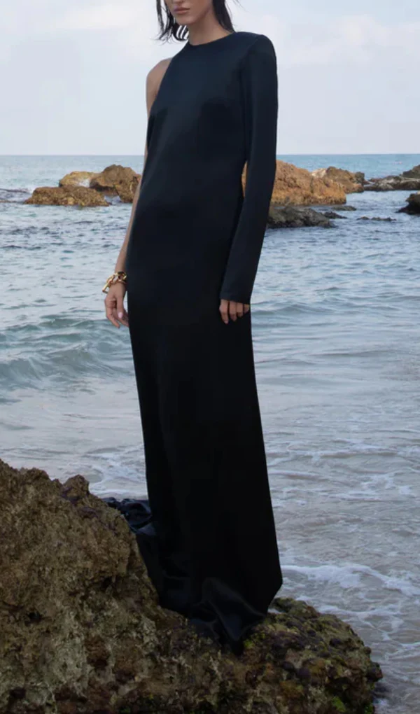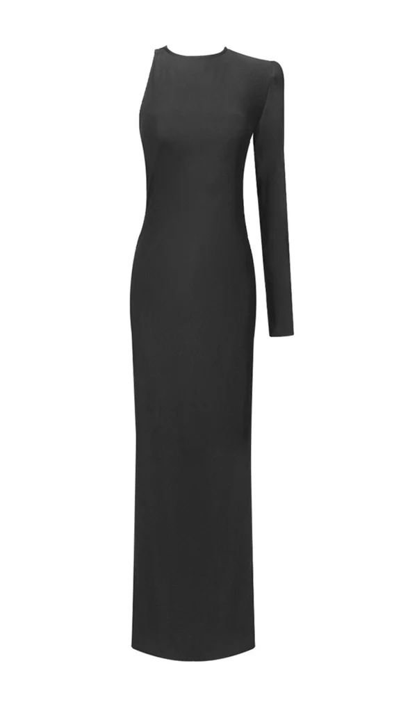 ANGELOU BLACK BACKLESS CHAIN MAXI DRESS
