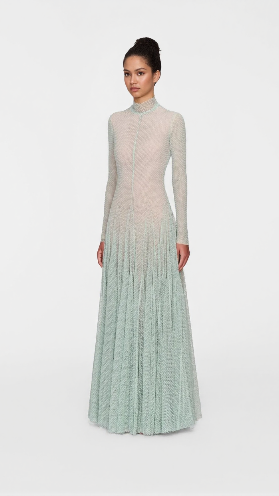 ANILA MINT MESH LONG SLEEVE SLIM MAXI DRESS