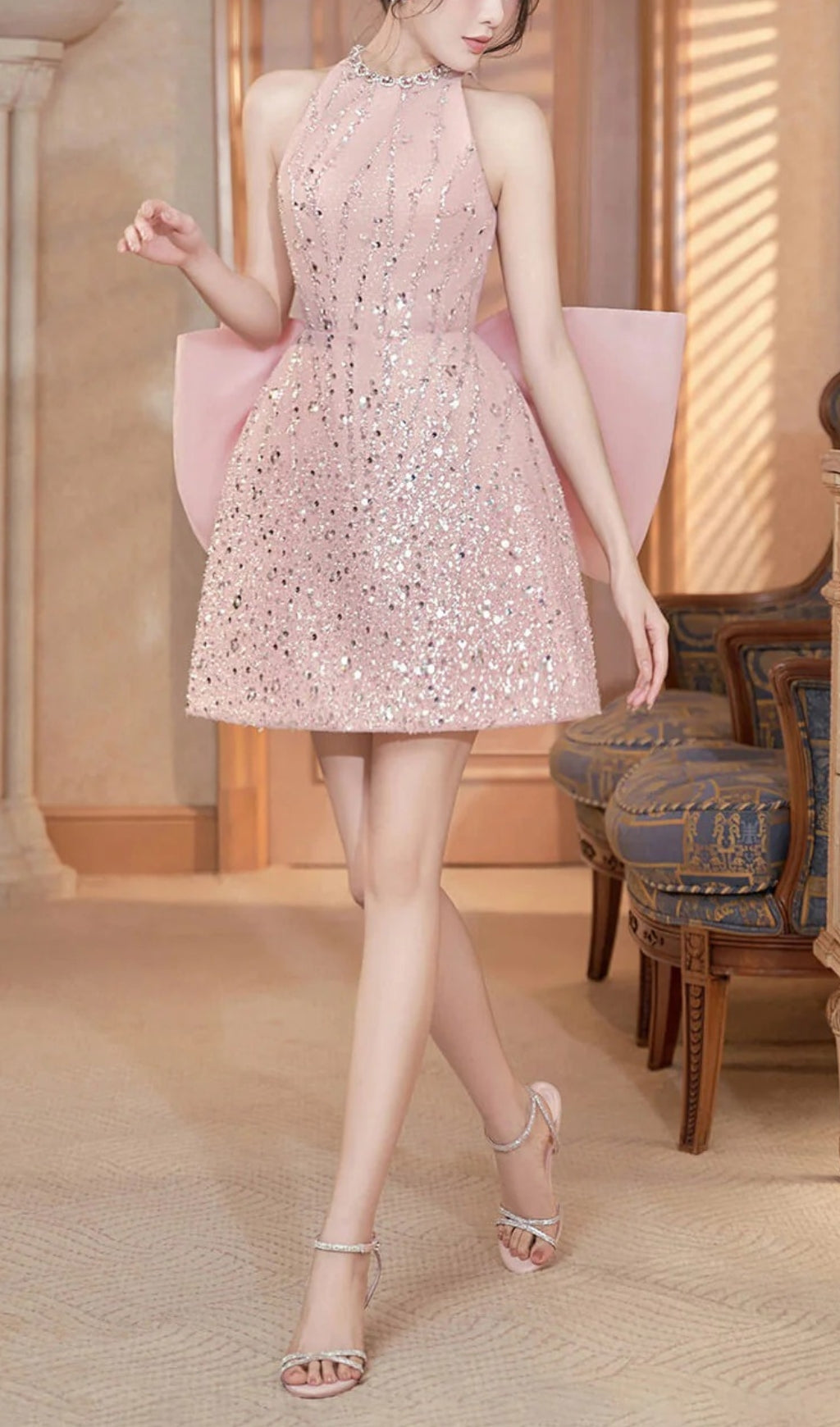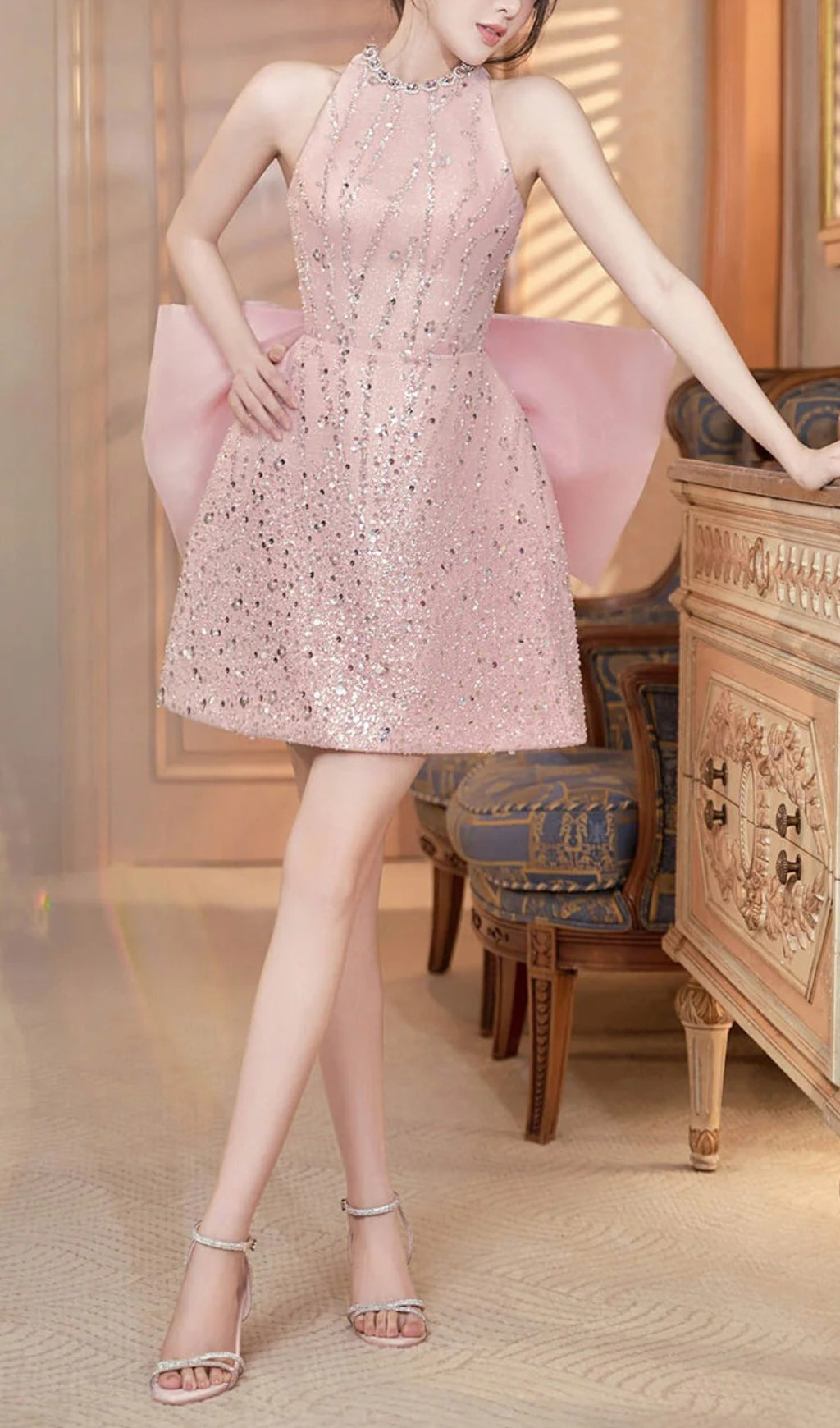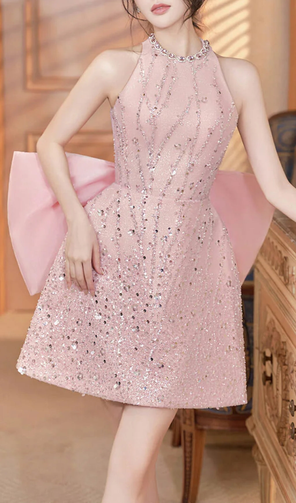 • Special Features: Big bow at the back, Attached rhinestones along the dress
