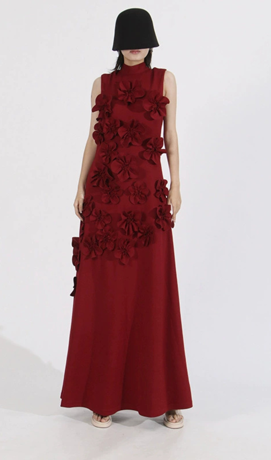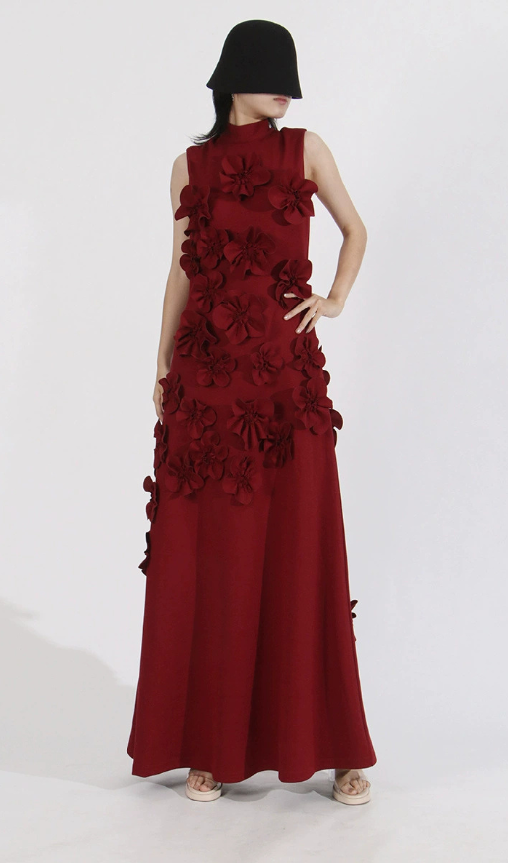 ANNONA PURPLE FLOWER EMBELLISHED MAXI DRESS