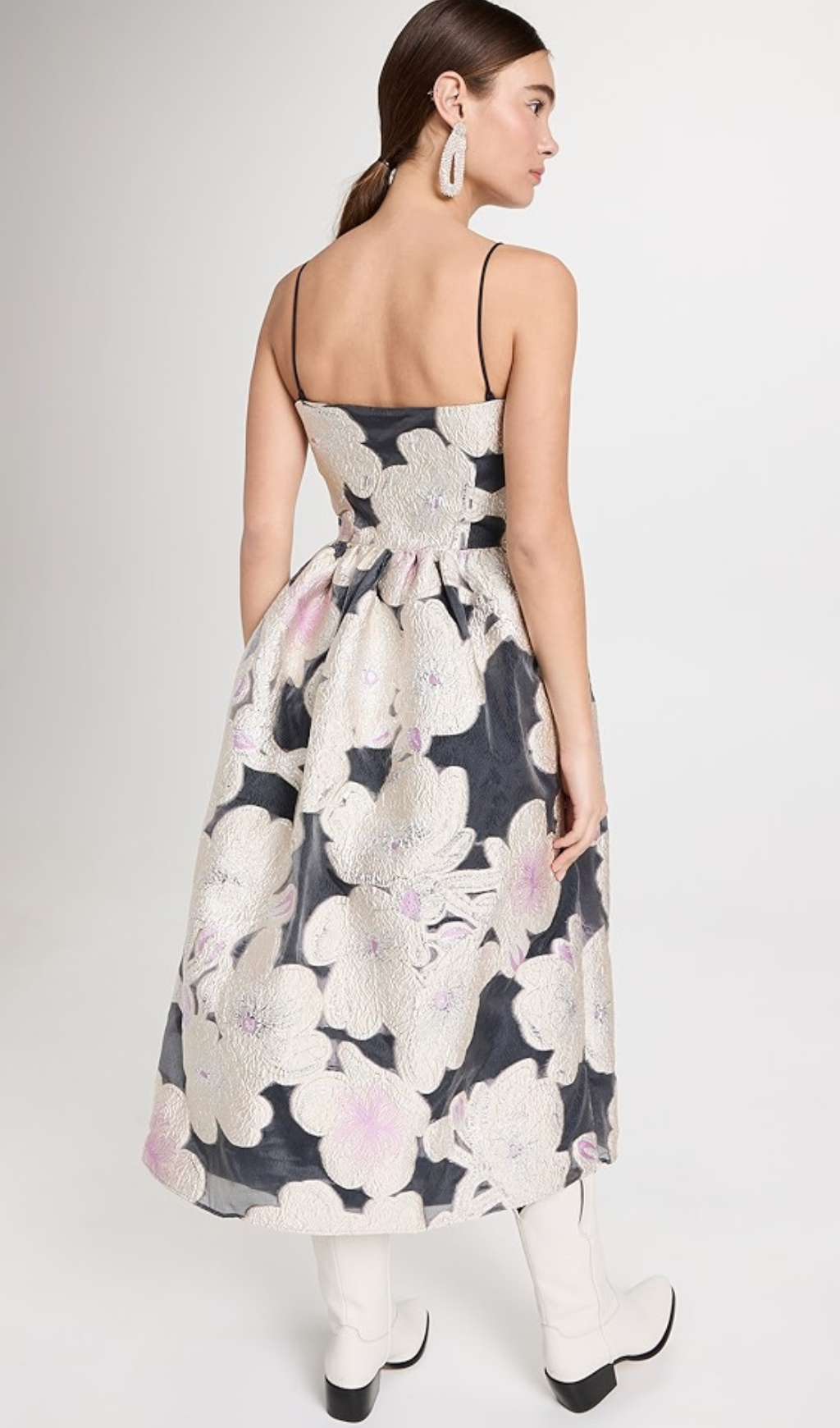 ANNY FLORAL-JACQUARD MIDI DRESS