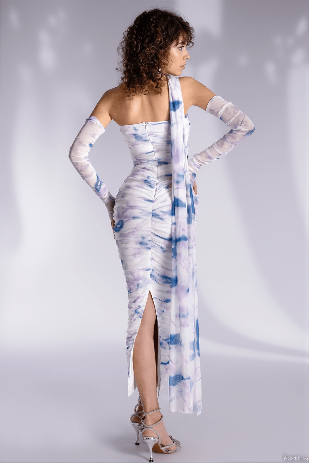 Antha Floral Pleat Midi Dress With Gloves