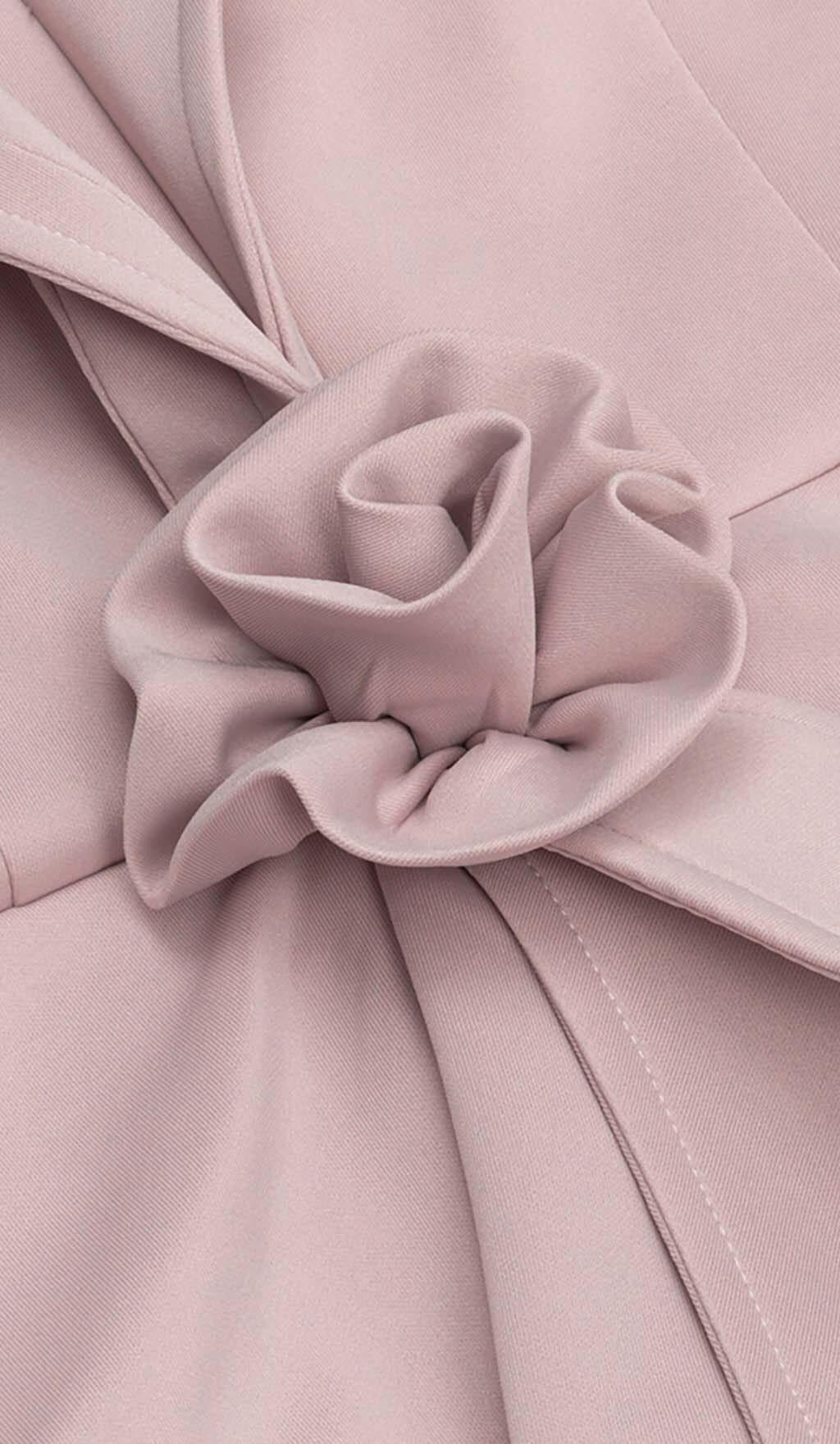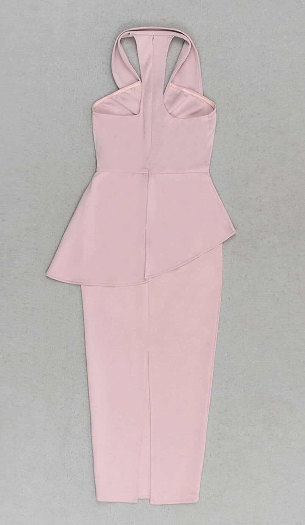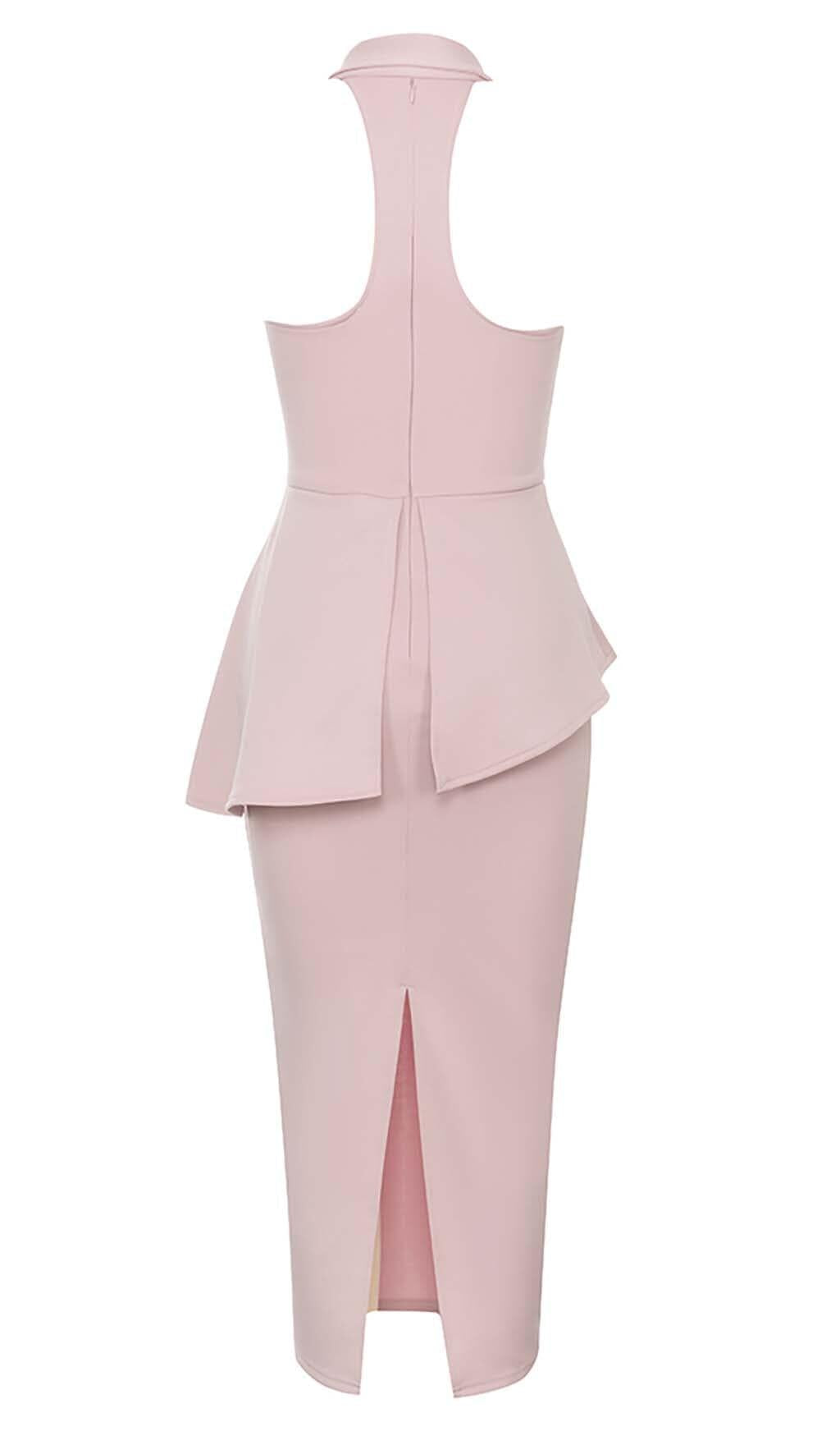 APPLIQUÉD BANDAGE MIDI DRESS IN PALE PINK