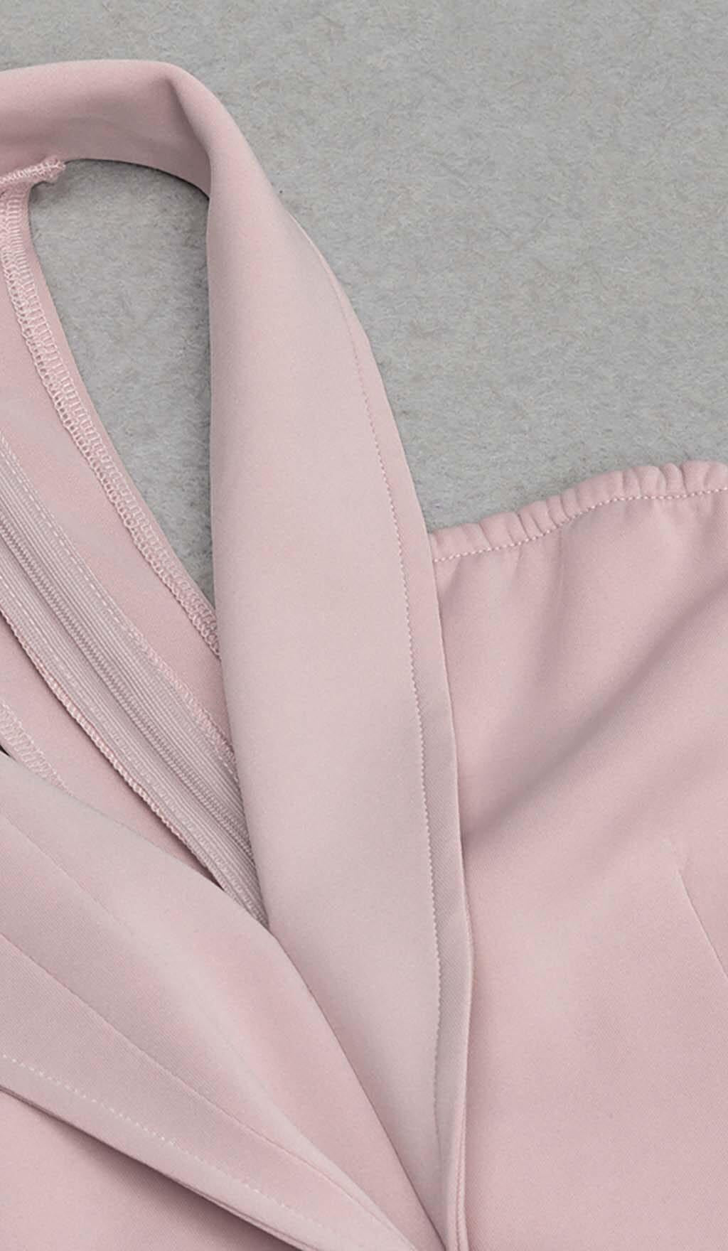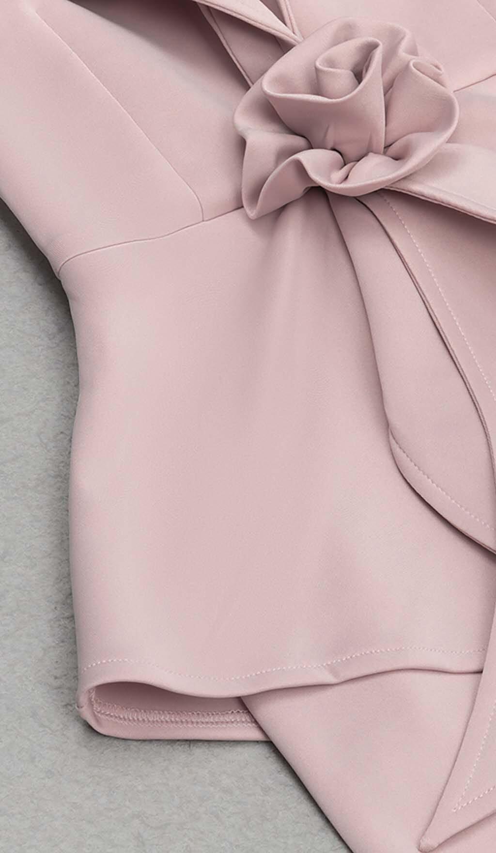 APPLIQUÉD BANDAGE MIDII DRESS IN PALE PINK