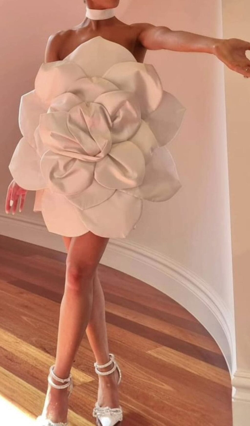 APRICOT FLOWER STRAPLESS MINI DRESS