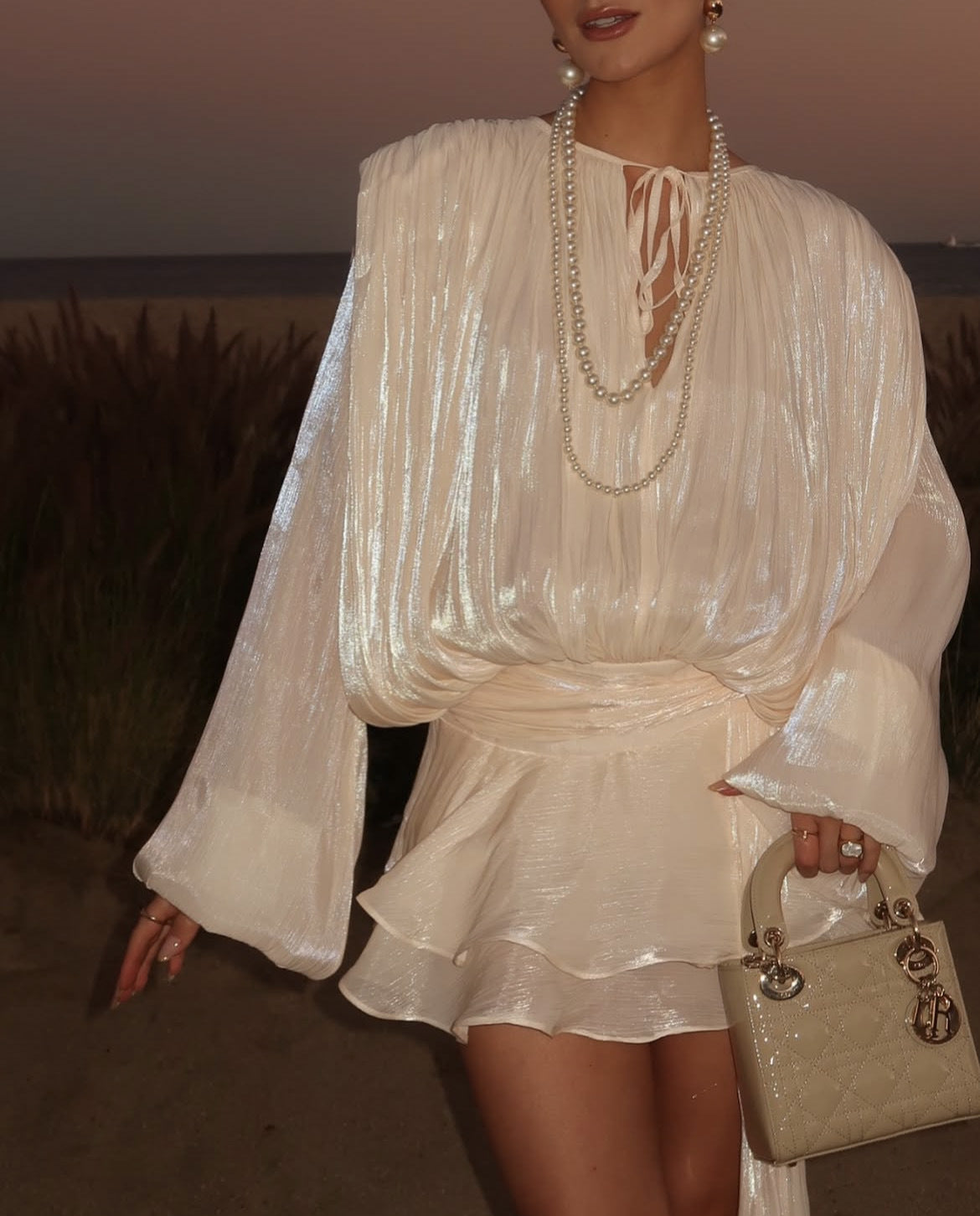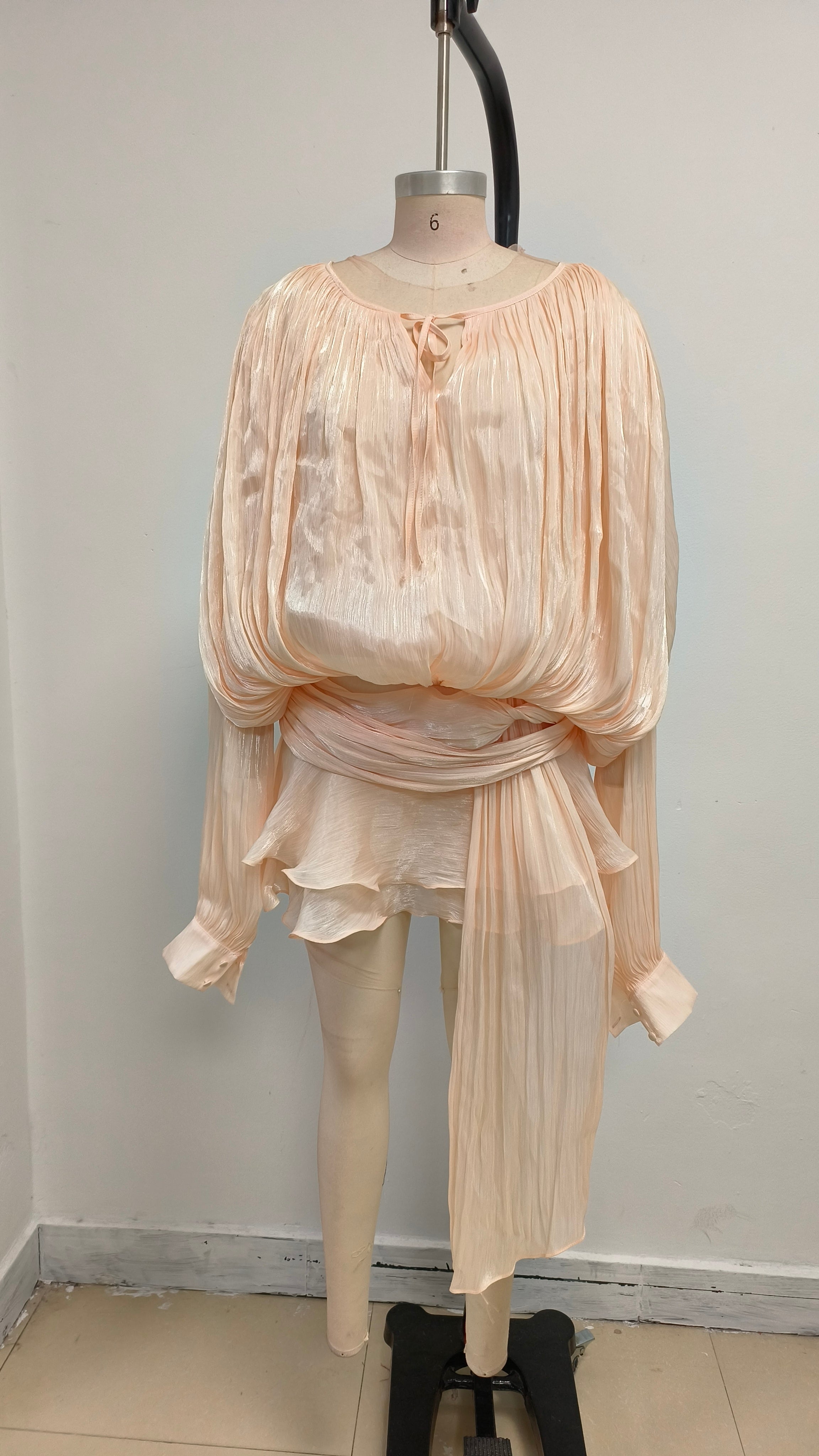 Apricot Long Sleeve Tie Mini Dress