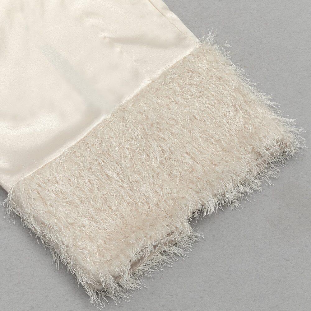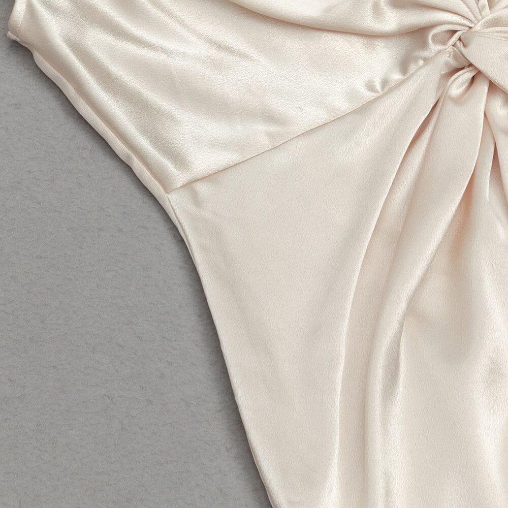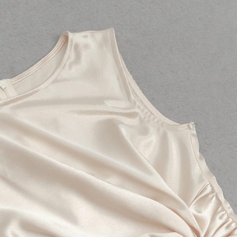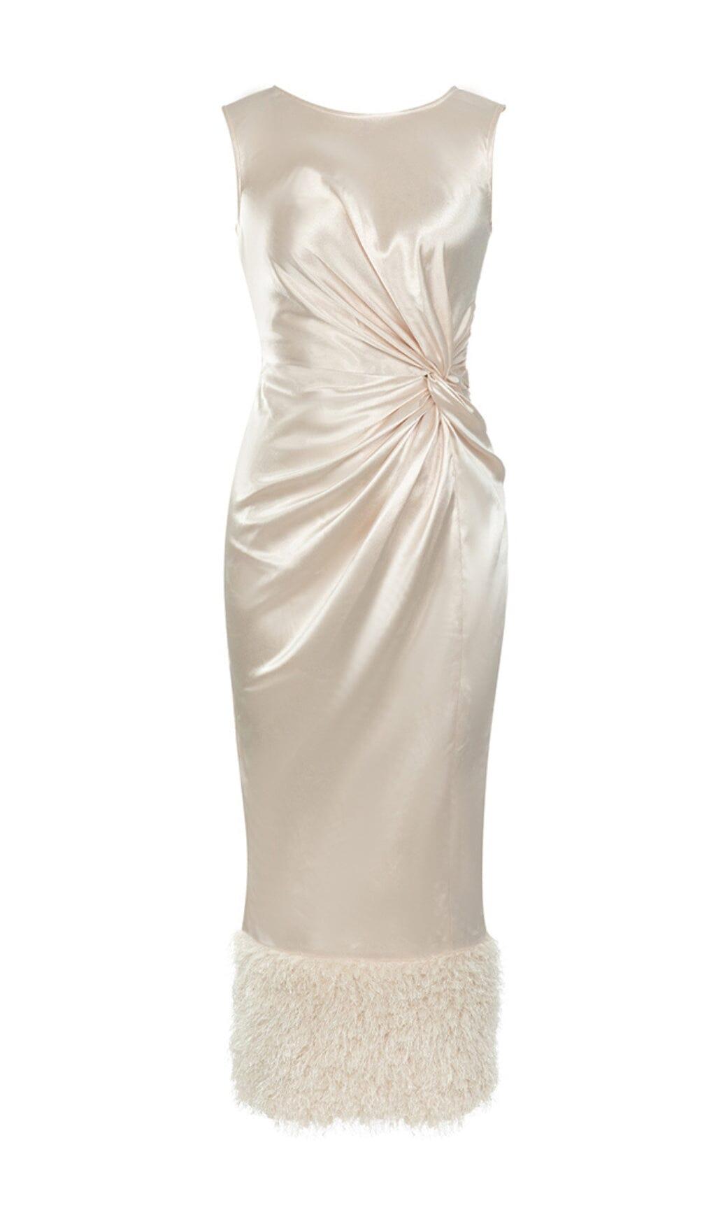 APRICOT SLEEVELESS PLEATED FEATHER HIP DRESS
