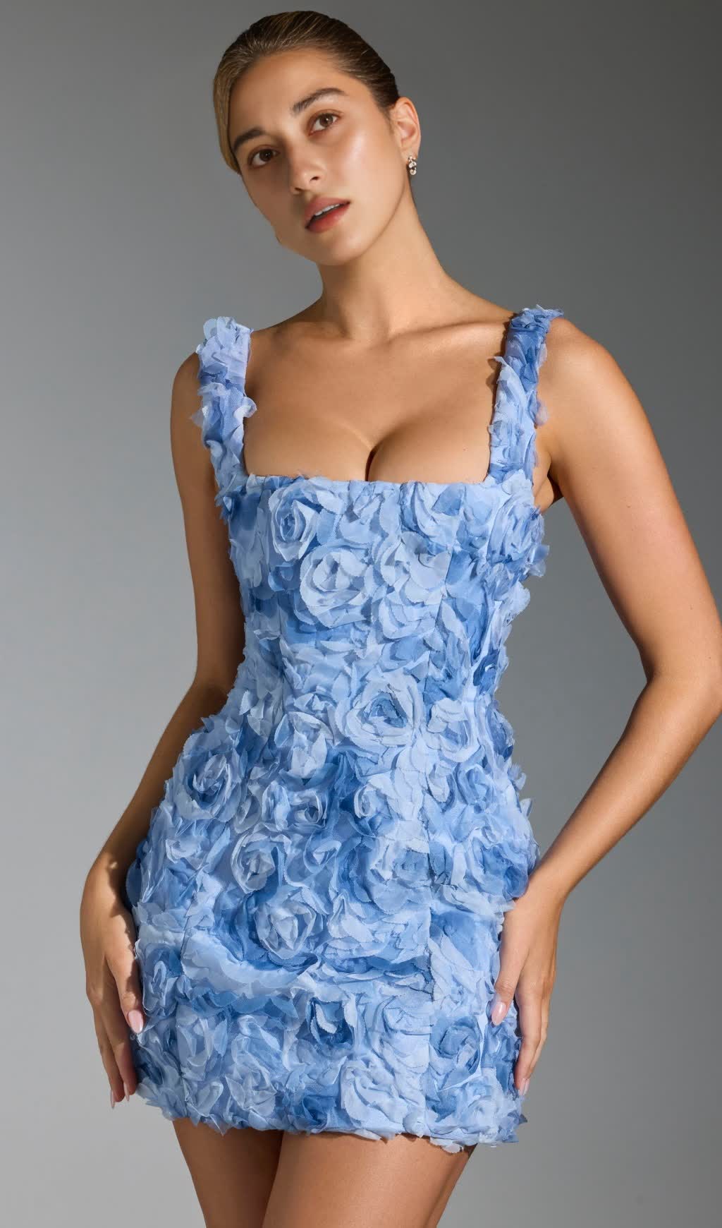 Flaunt your playful side in our AQUATA BLUE FLOWER MINI DRESS. With its vibrant blue floral print and mini length, this dress is perfect for fun and flirty summer days. Step out in style and turn heads with this quirky and unique piece. (Warning: may cause serious fashion envy.)