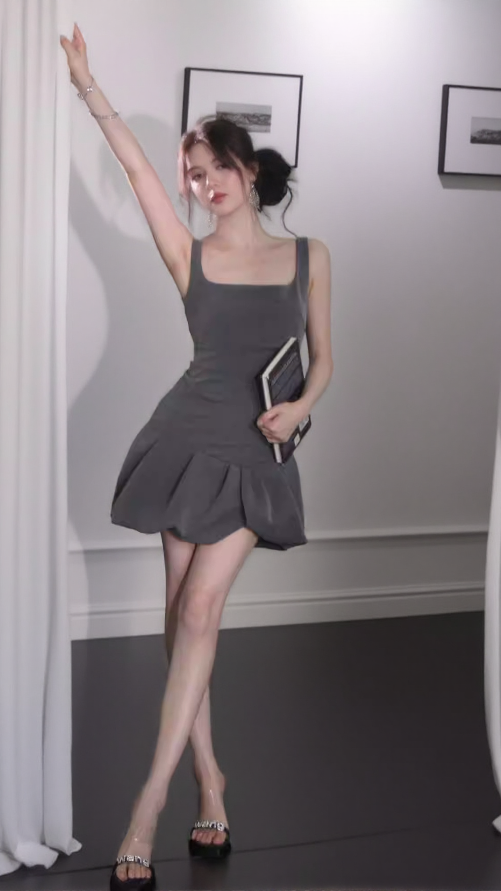 The Arabela Square Neck Bud Mini Dress in gray features a refined square neckline that enhances the collarbone and offers a modern silhouette. Crafted for a flattering fit, its delicate bud detailing adds subtle texture to the sleek design. This mini dress pairs versatility with elegance, making it suitable for both casual outings and sophisticated events. Its gray tone provides a neutral yet stylish foundation for effortless accessorizing.