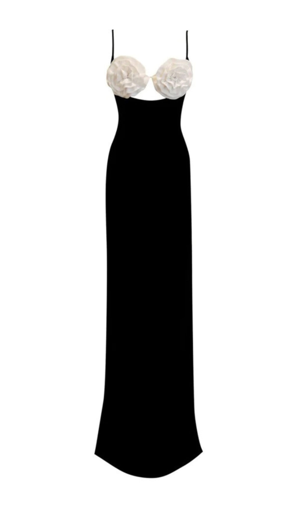 ARAN WHITE 3D FLOWER BACKLESS MAXI DRESS
