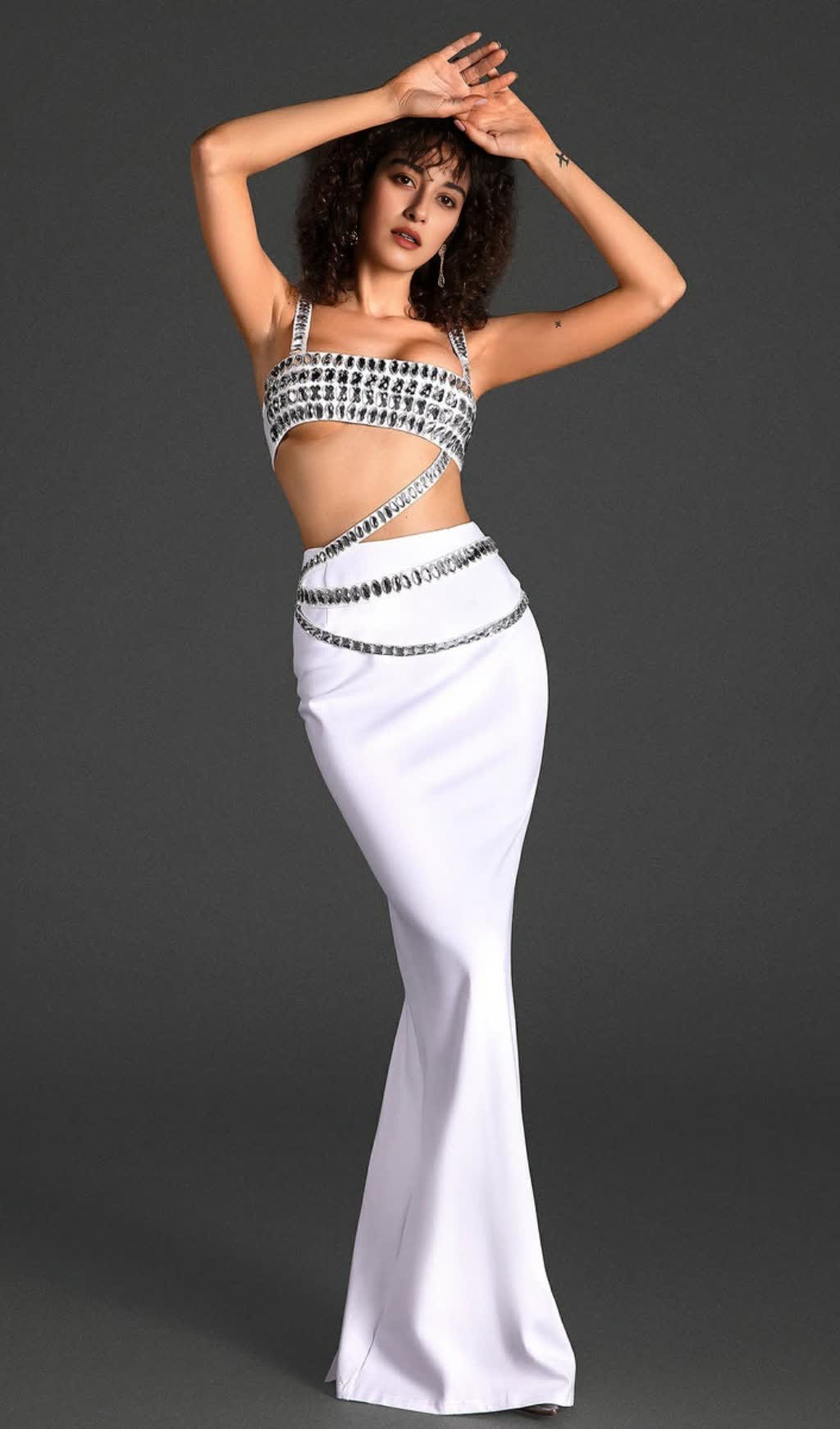 Step into the spotlight with our crystal bandage two-piece set. This set features dazzling crystals, a figure-enhancing bandage design, and a chic two-piece ensemble, making it a stunning addition to your wardrobe. Enhanced with intricate strap details, this set adds a contemporary edge, ensuring you radiate charm and confidence at every event.