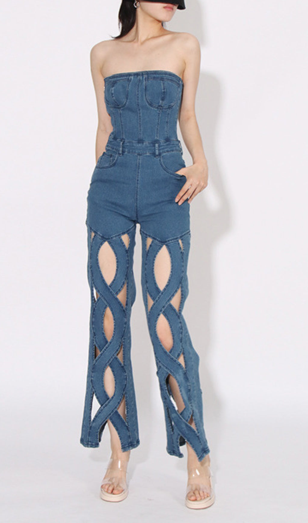 ARCANGELA DENIM CUTOUT JUMPSUIT