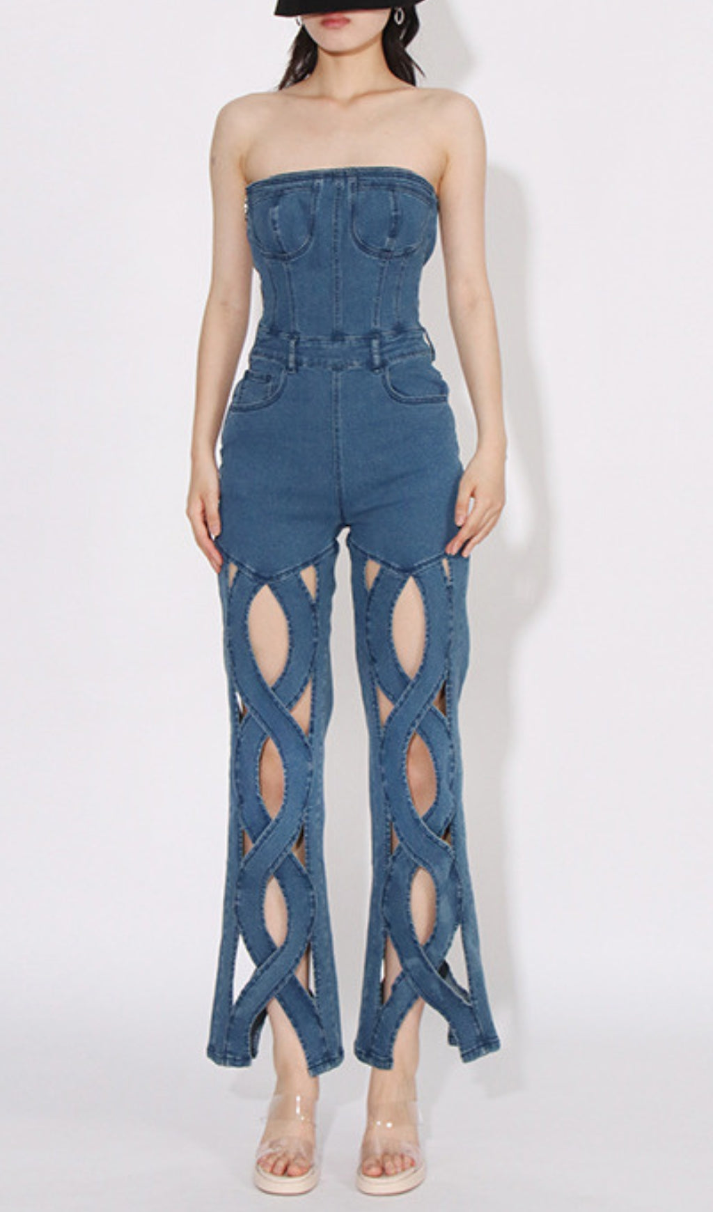 Get ready to rock the latest fashion trend with the ARCANGELA DENIM CUTOUT JUMPSUIT! Made of high-quality denim and featuring unique cutouts, this jumpsuit is perfect for the fashion-forward and confident individual. Step out in style and turn heads with this must-have piece.