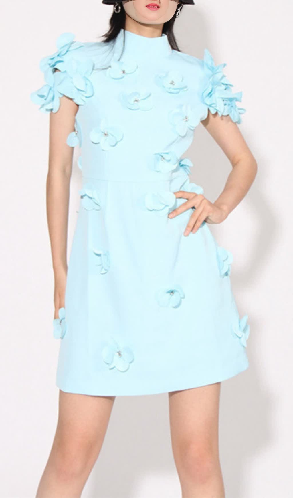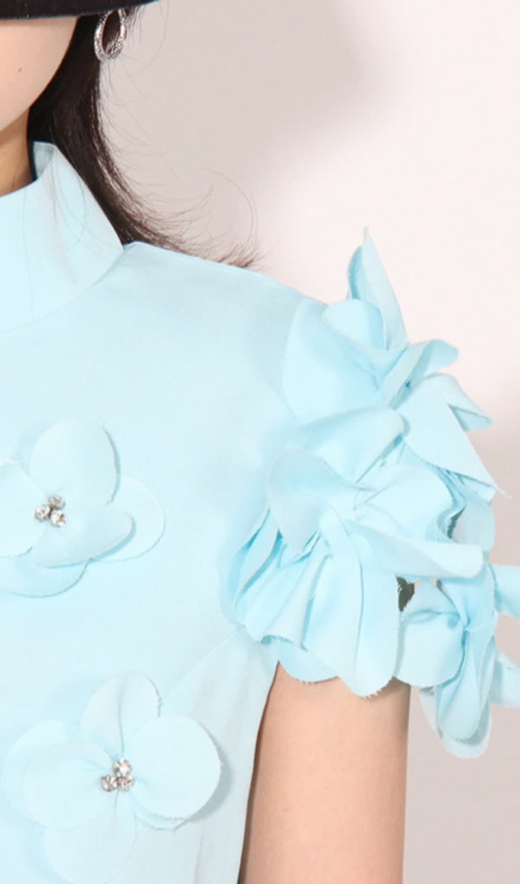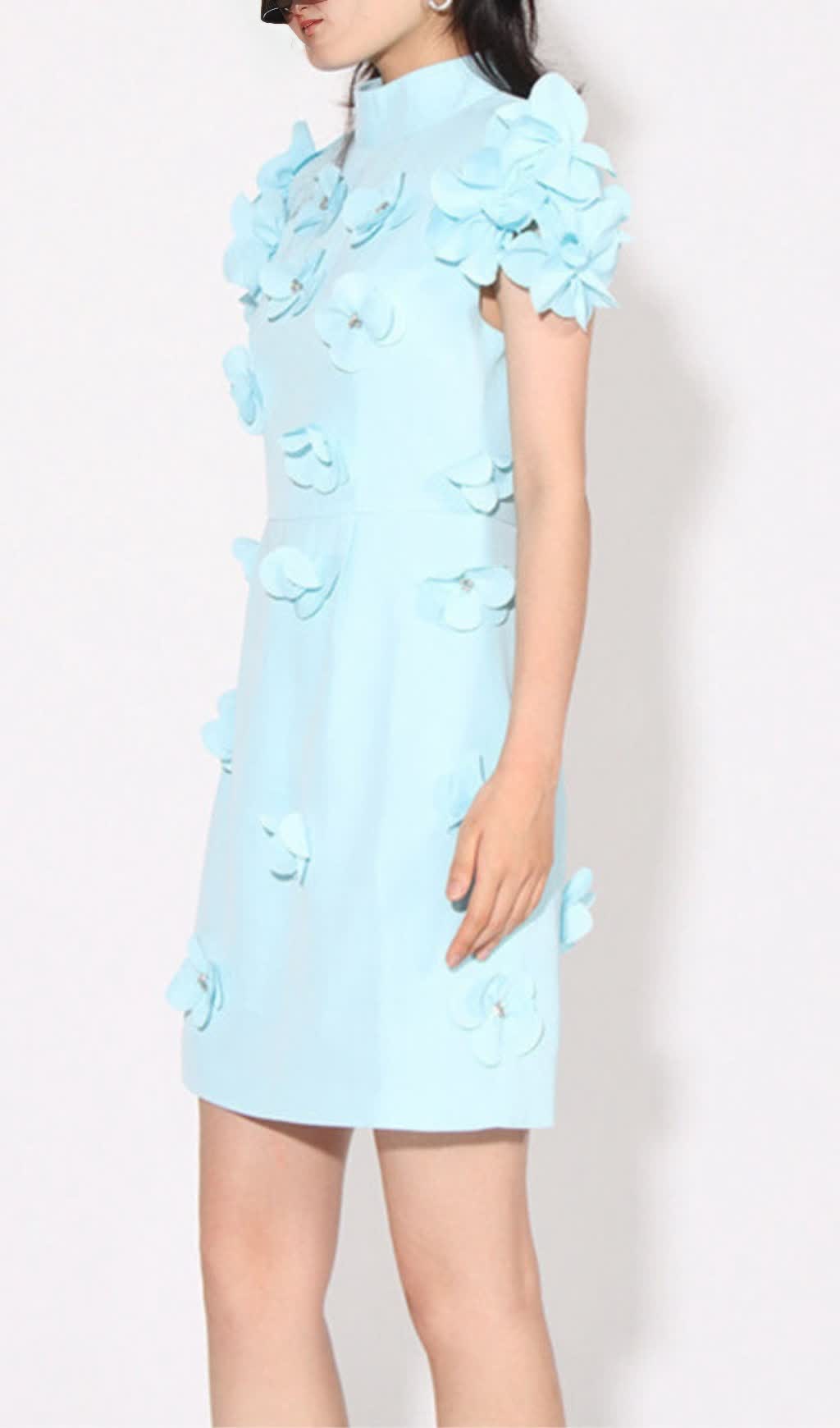 BLUE FLOWER DECOR MINI DRESS