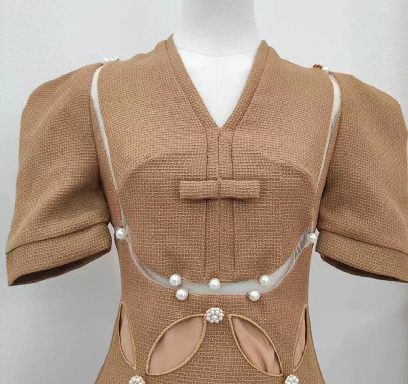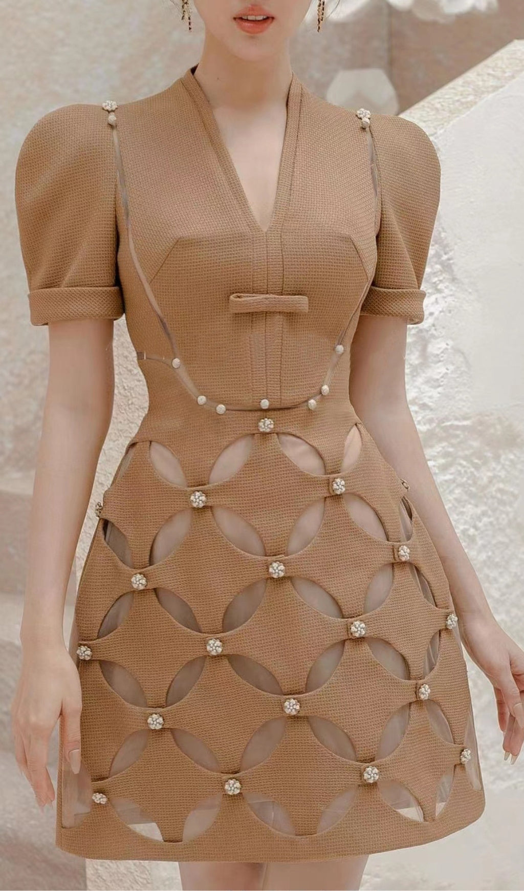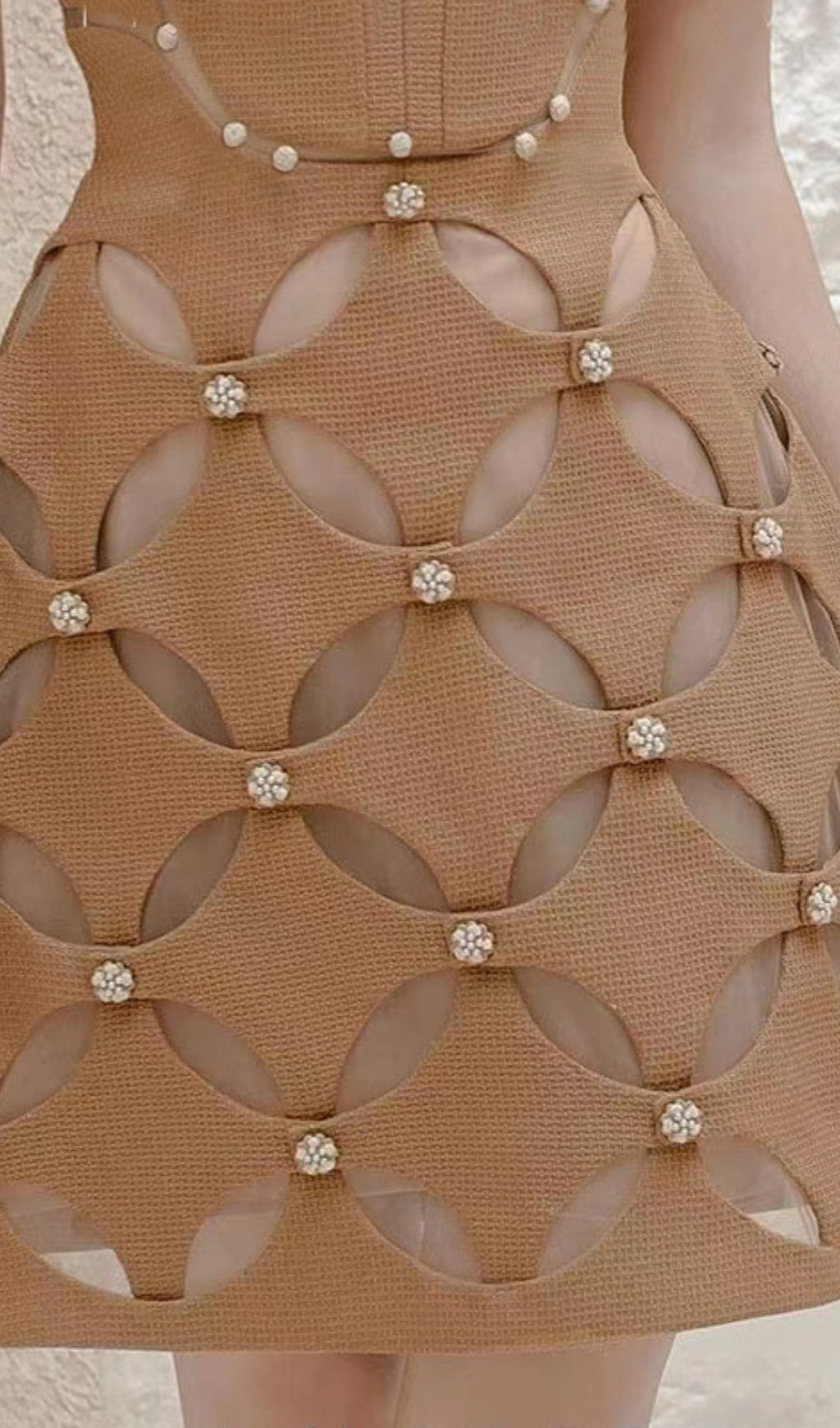 Get ready to turn heads in our ARCH PEARL EMBELLISHED MINI DRESS! With its delicate pearl embellishments, this dress will add a touch of elegance to any occasion. Its mini length adds a flirty edge, making it perfect for a night out with the girls. Be the center of attention in this unique and playful dress.