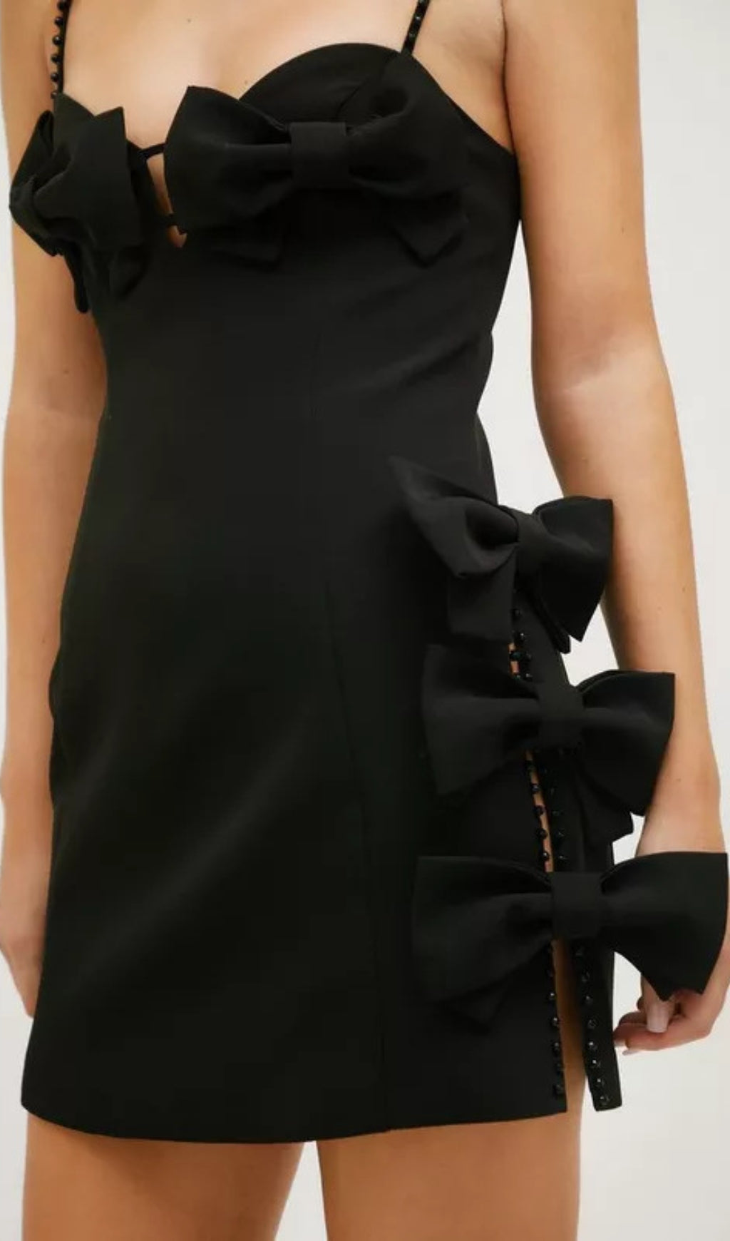 BEAD BOW BANDAGE MINI DRESS