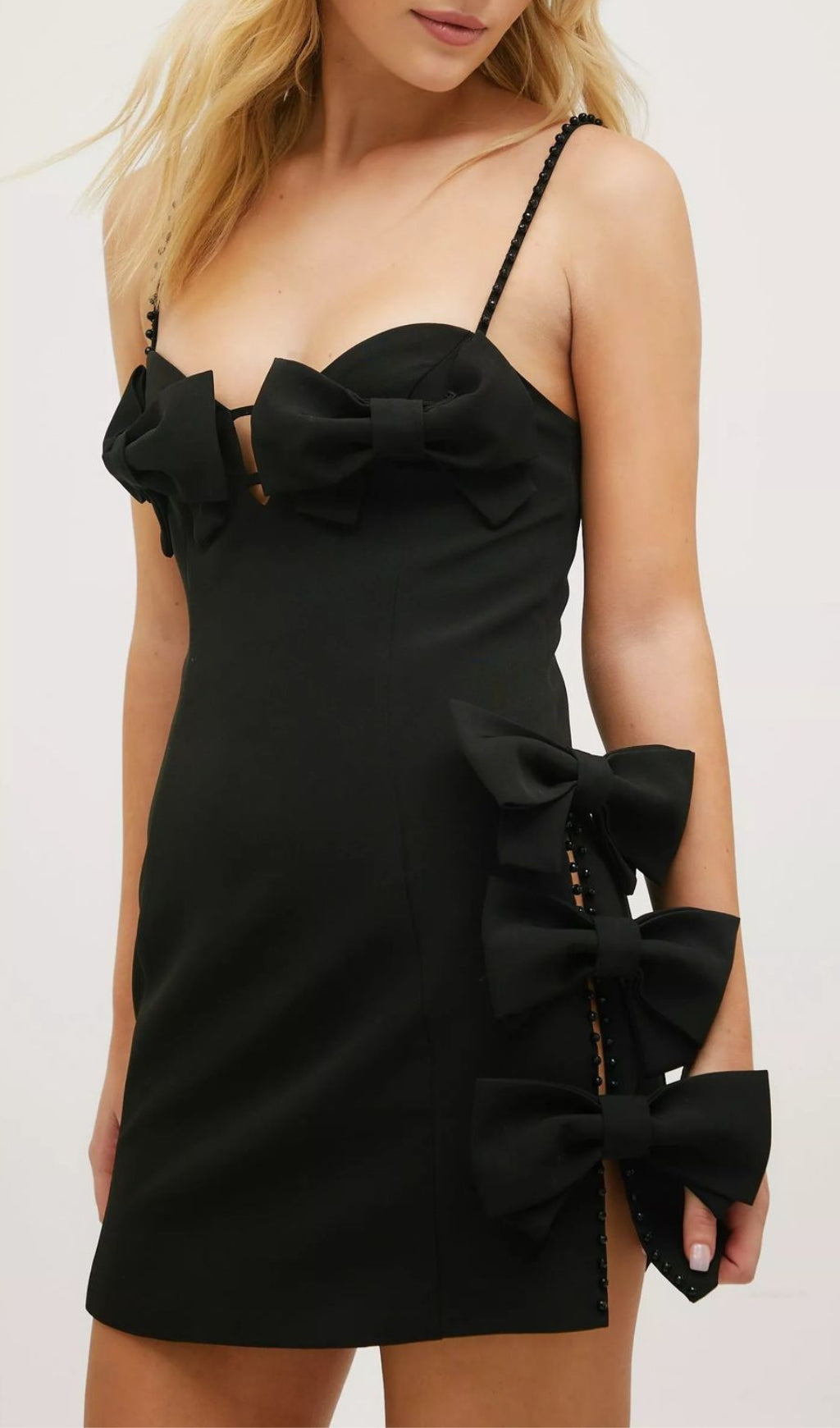 ARDESIA BEAD BOW BANDAGE MINI DRESS