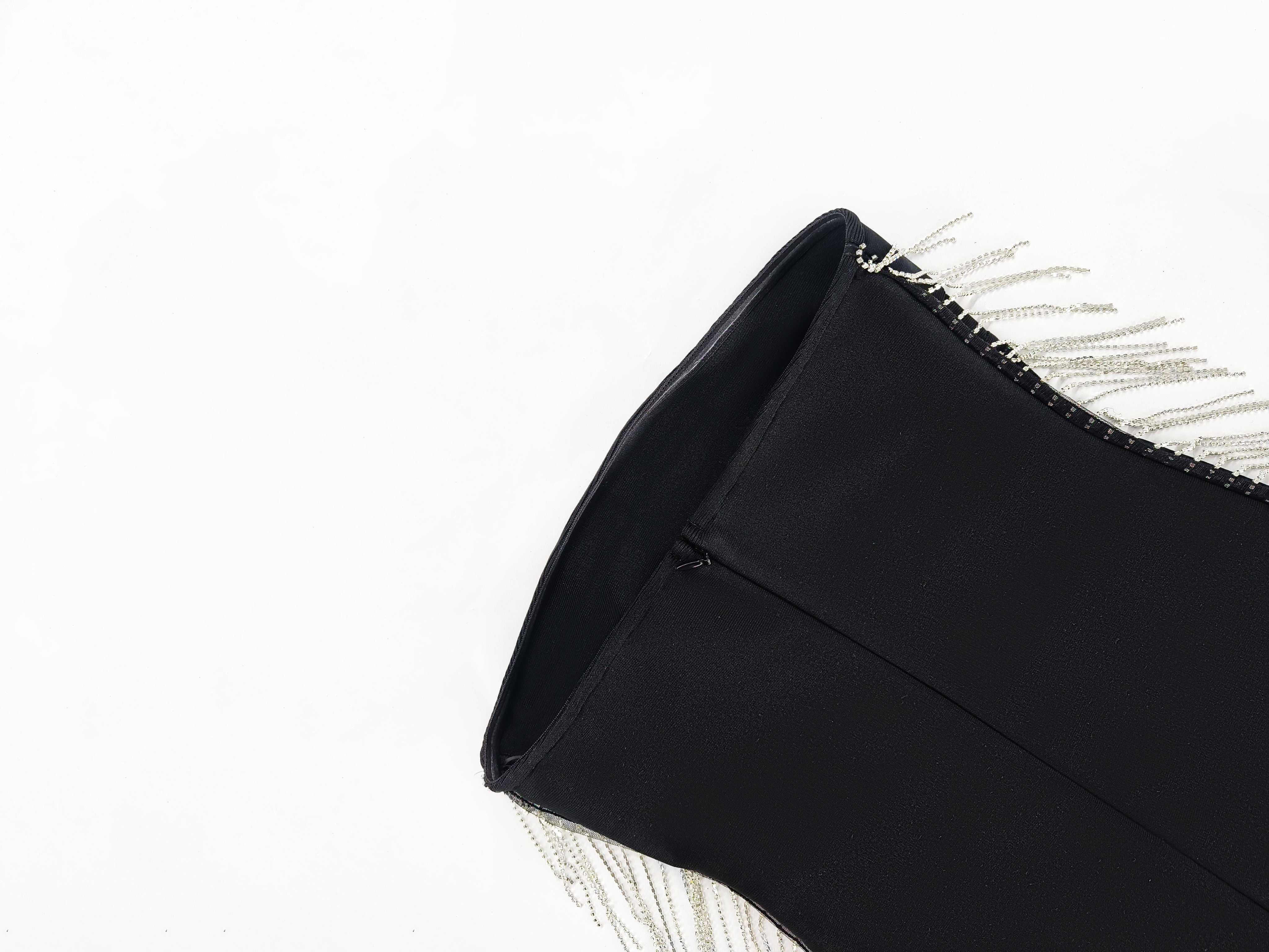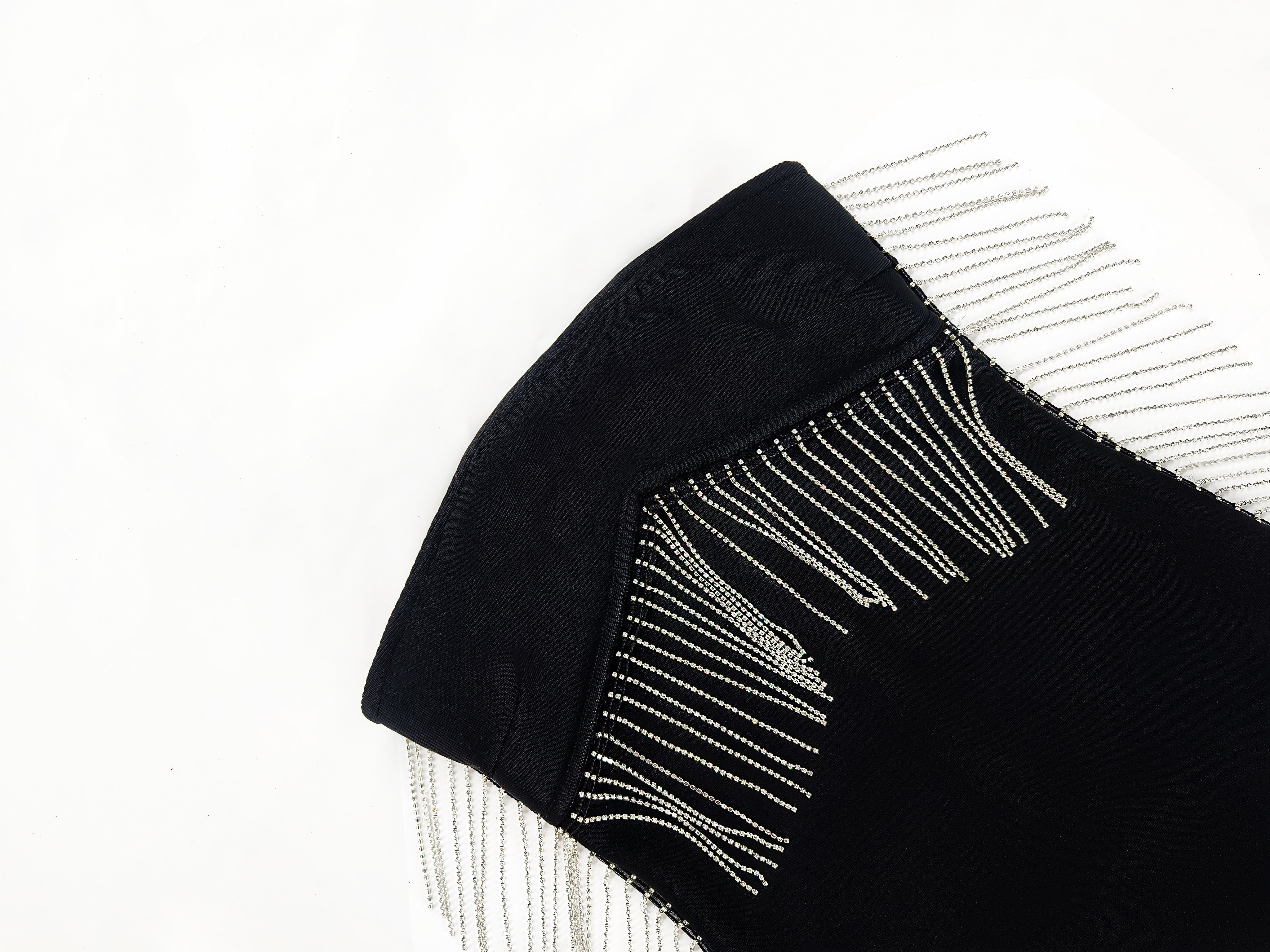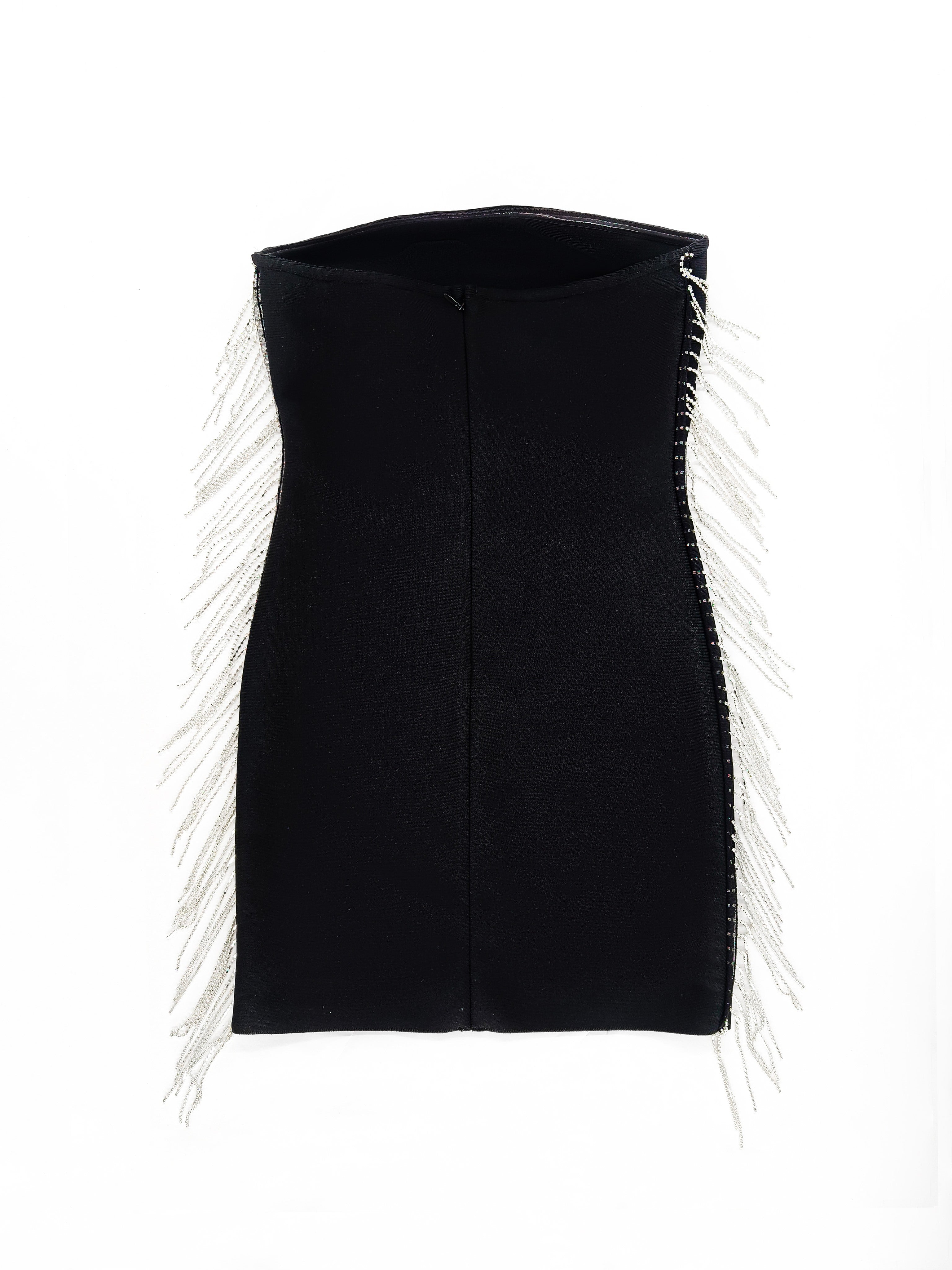 Step out in style with the ARDETH Tassel Bandage Mini Dress. This dress features a unique tassel design that adds a playful touch to your look. Made from high-quality bandage fabric, it hugs your curves for a flattering fit. Perfect for a night out or special occasion, this dress will make you the center of attention!