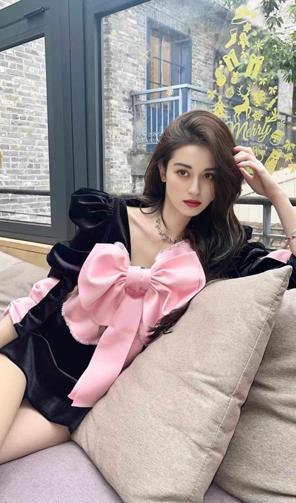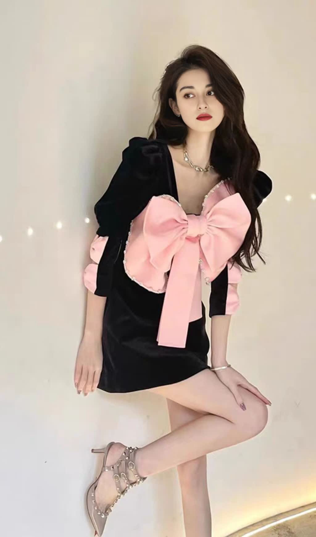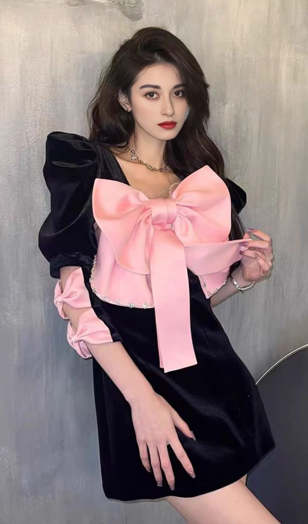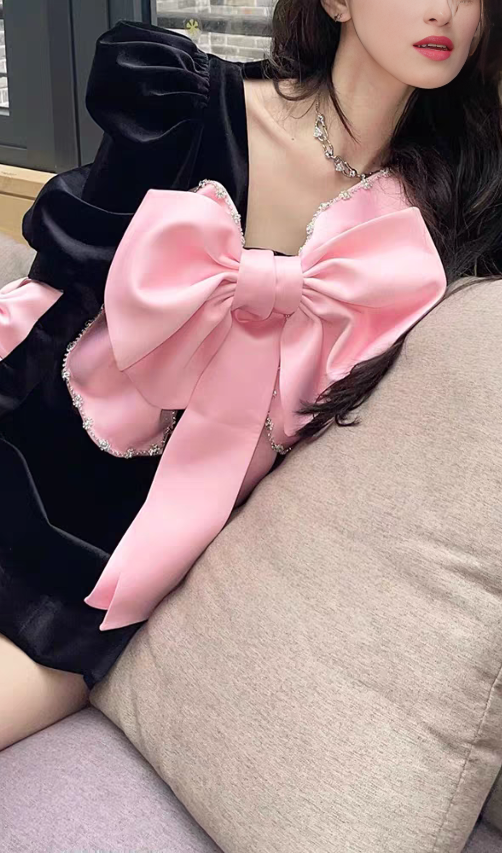 BOW EMBELLISHED MINI DRESS