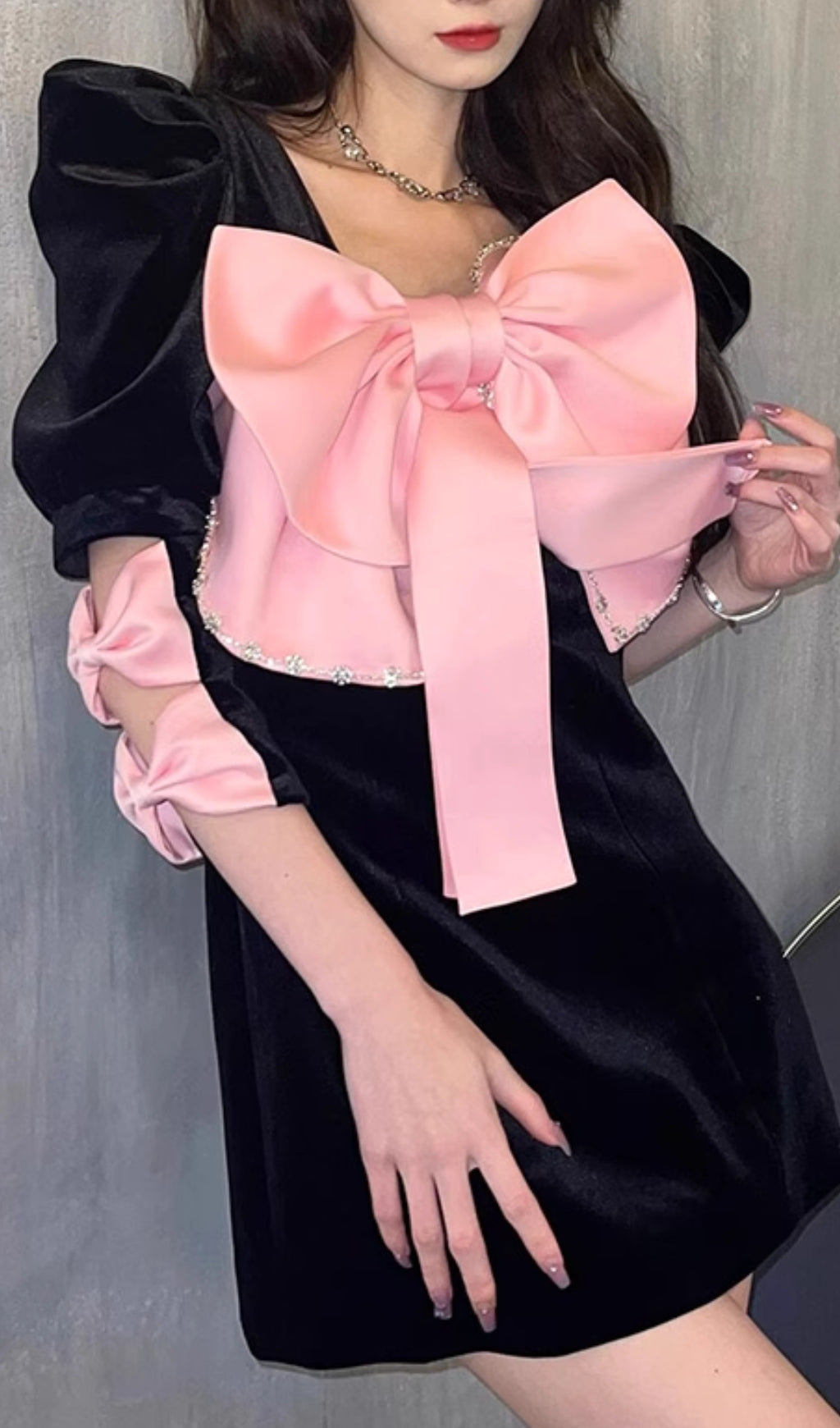 Introducing the AREVIK BOW EMBELLISHED MINI DRESS - perfect for stealing the spotlight at any event. Featuring a fun bow embellishment and a flirty mini length, this dress is sure to turn heads and make you the center of attention. Own the room with this playful and stylish dress.