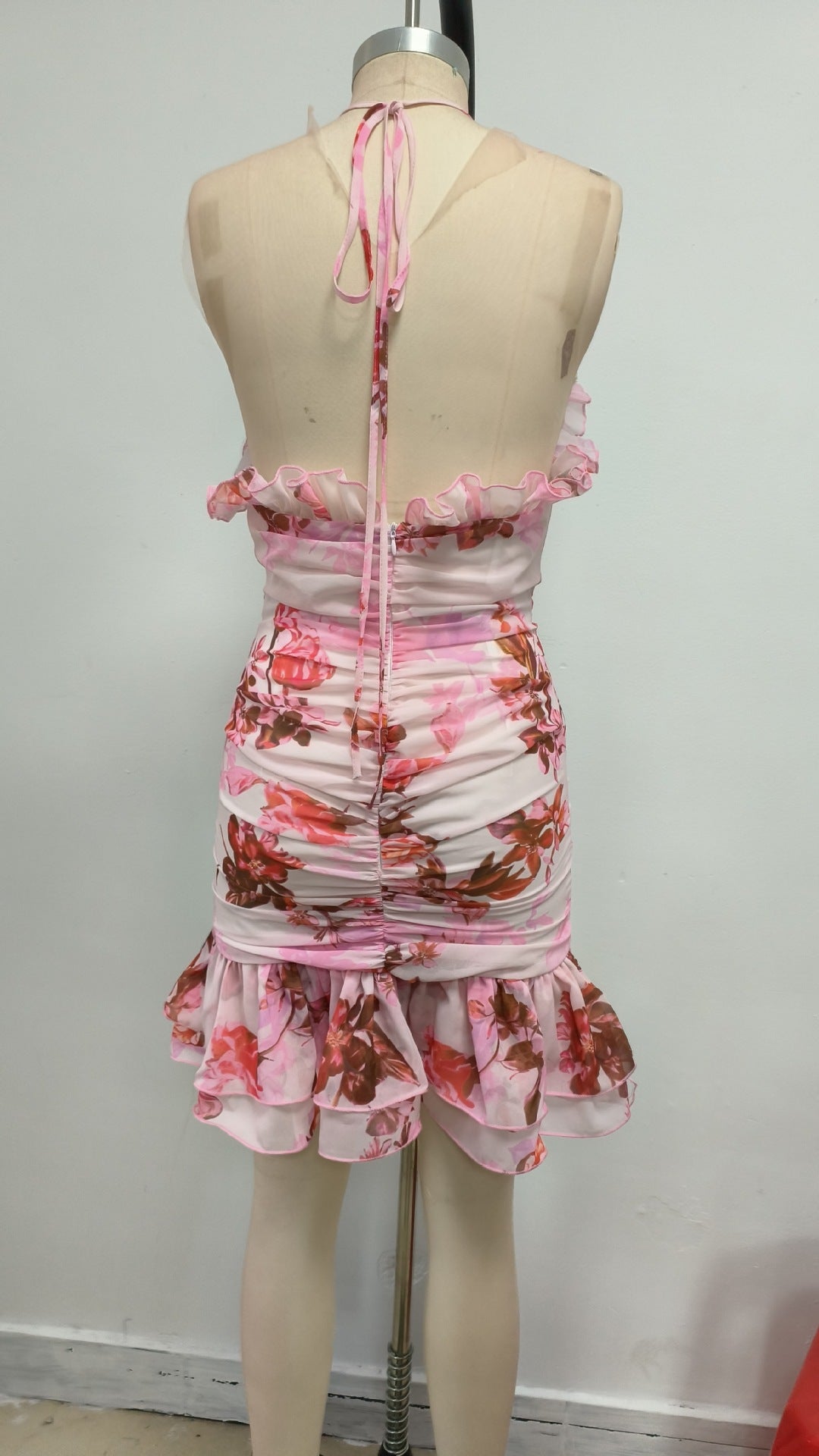 • Waistline: The ruched design on the dress conforms to the body curves, highlighting the waist and creating a beautiful body proportion.