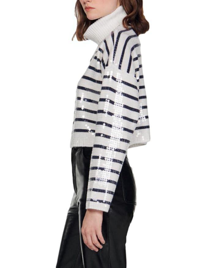ARIEL SEQUIN STRIPED TURTLENECK SWEATER
