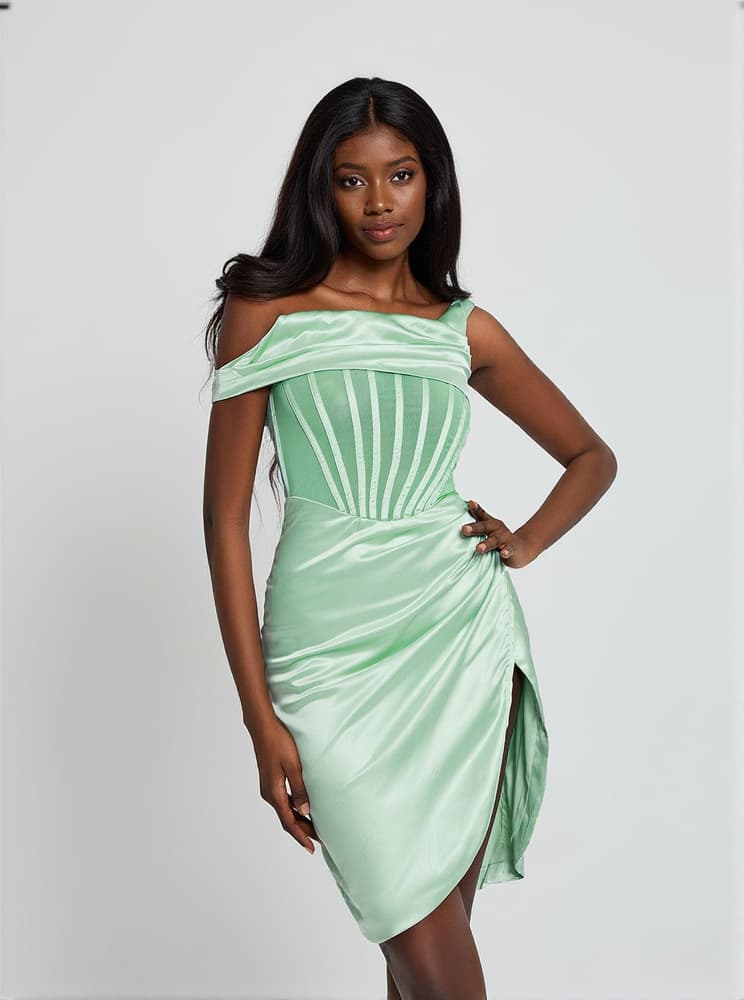 Ariella Satin Corset Dress In Mint