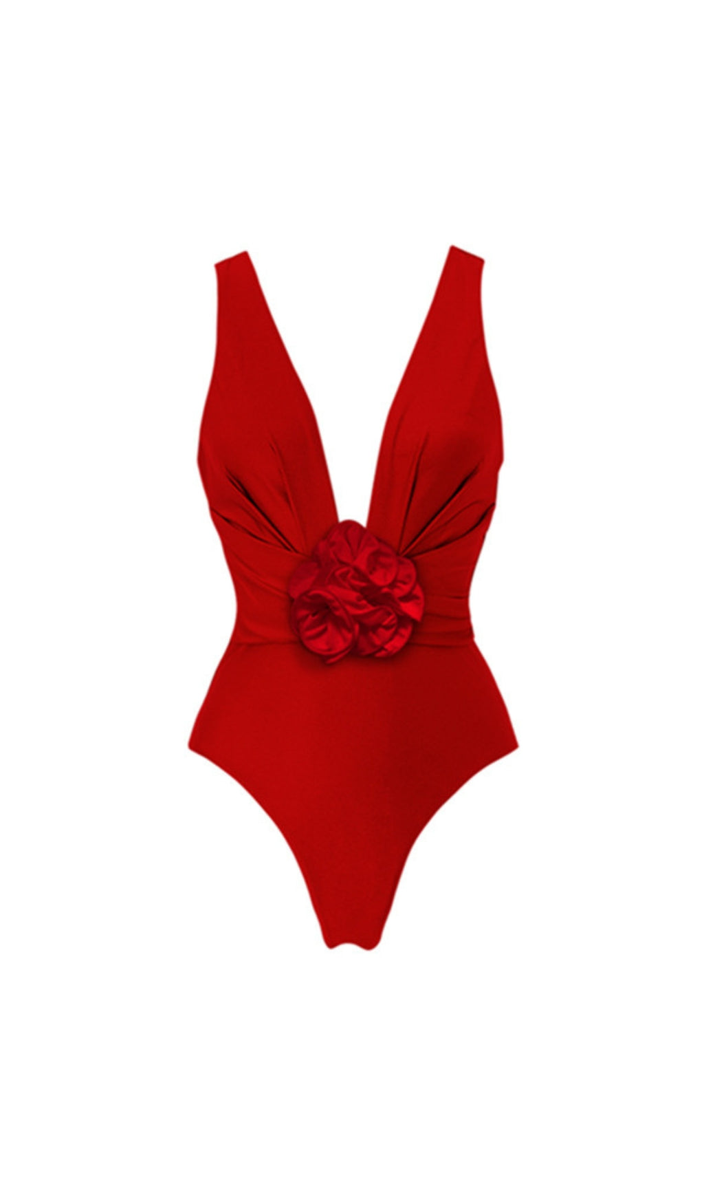 ARITZ RED V NECK FLOWER SWIMSUIT AND SKIRT