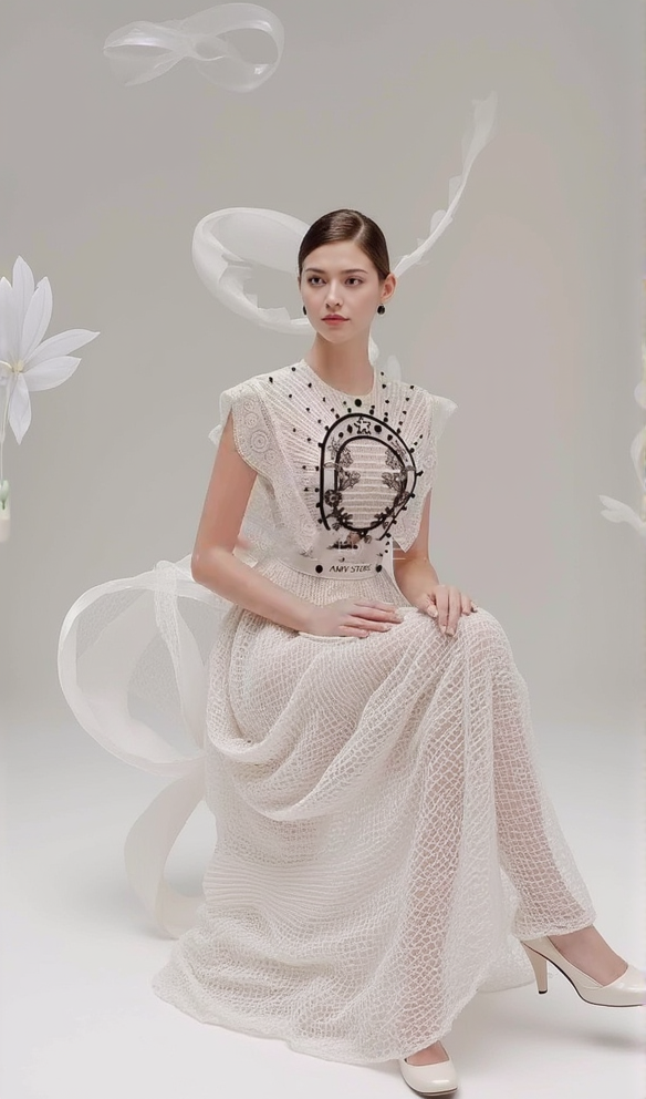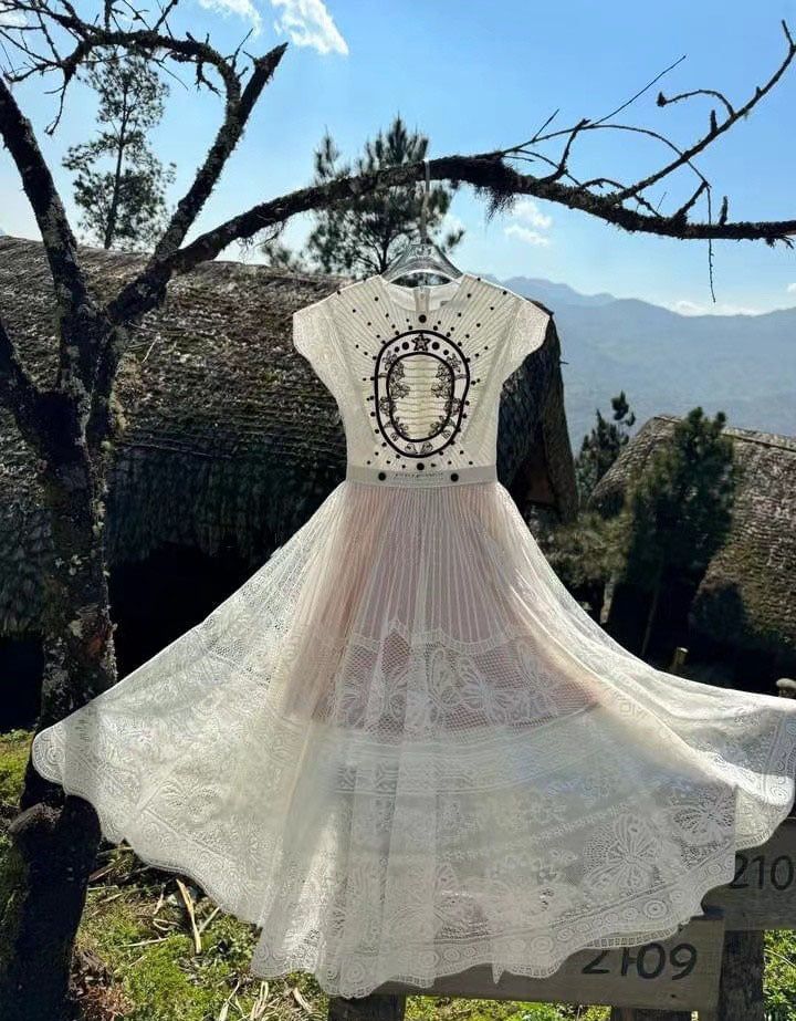 EMBROIDERY LACE MIDI DRESS IN WHITE