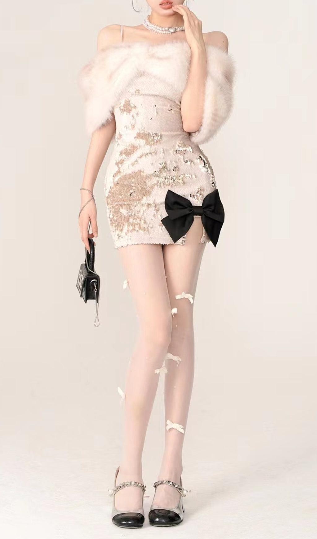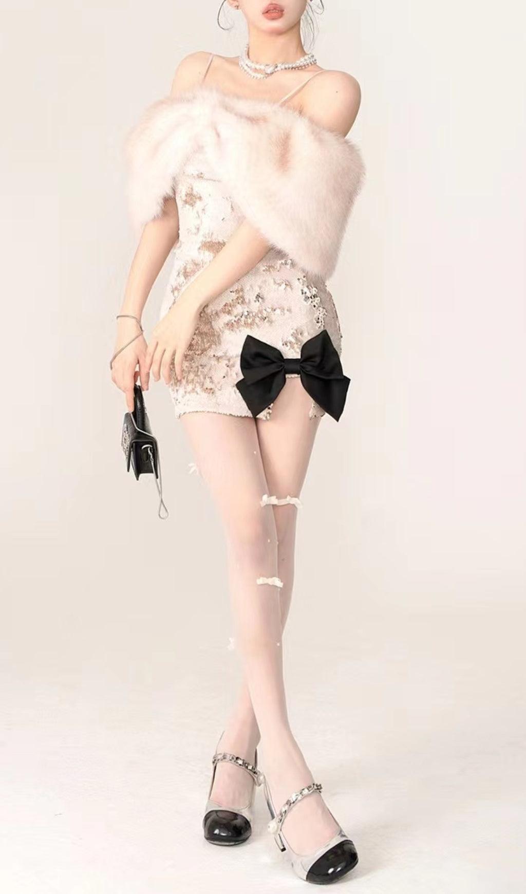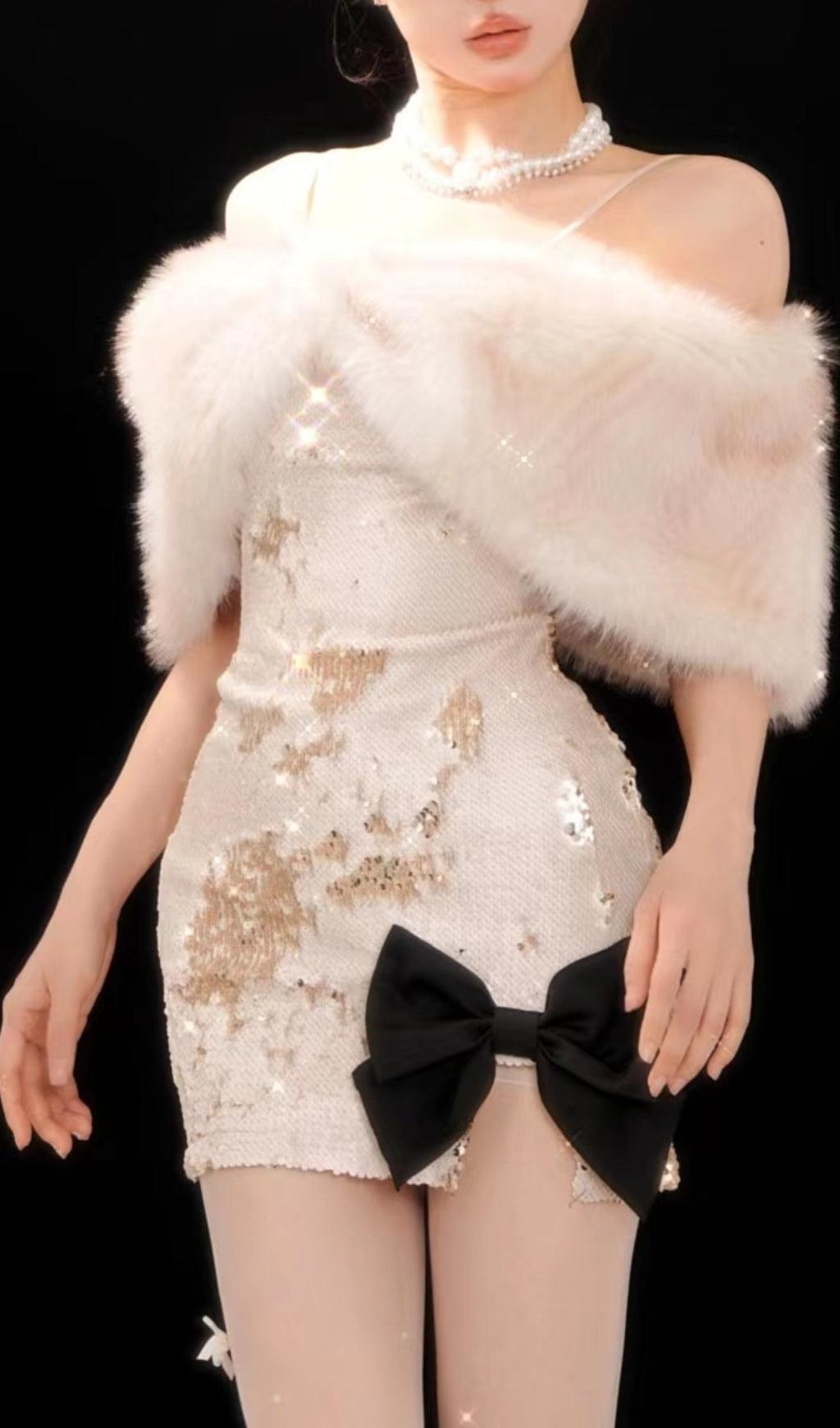 ARTIFICIAL FUR SEQUNED MINI DRESS