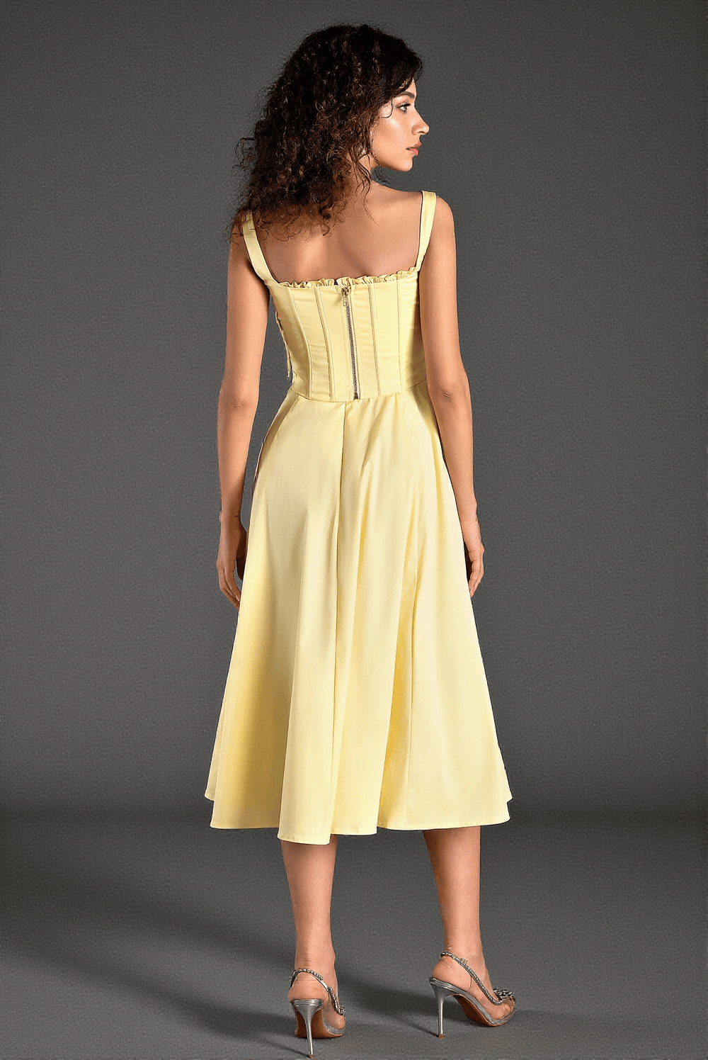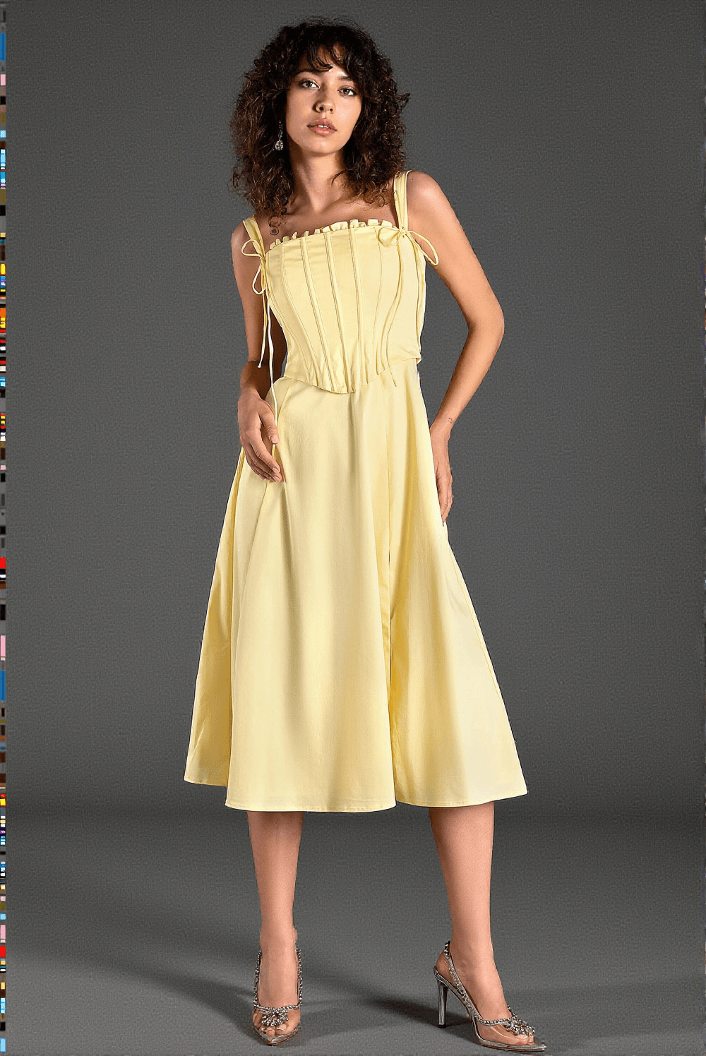 Elevate your wardrobe with the Artinou Strap Tie Corset Dress Set, designed to highlight your natural beauty and charm. This captivating ensemble combines a corset-inspired design that accentuates curves elegantly with a midi-length skirt that exudes sophistication and grace.