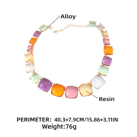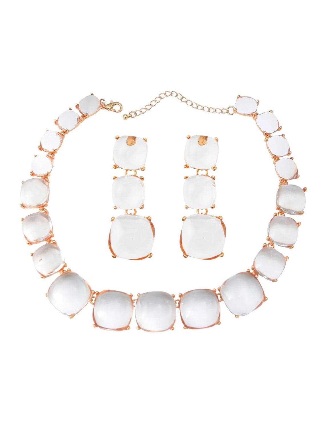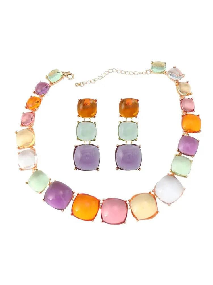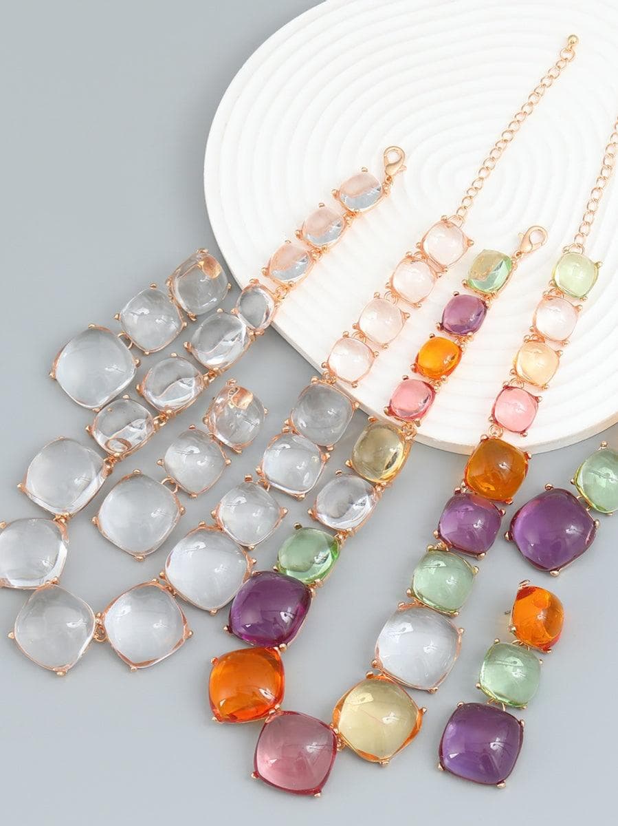 Artsy Square Rhinestone Long Drop Necklace Set